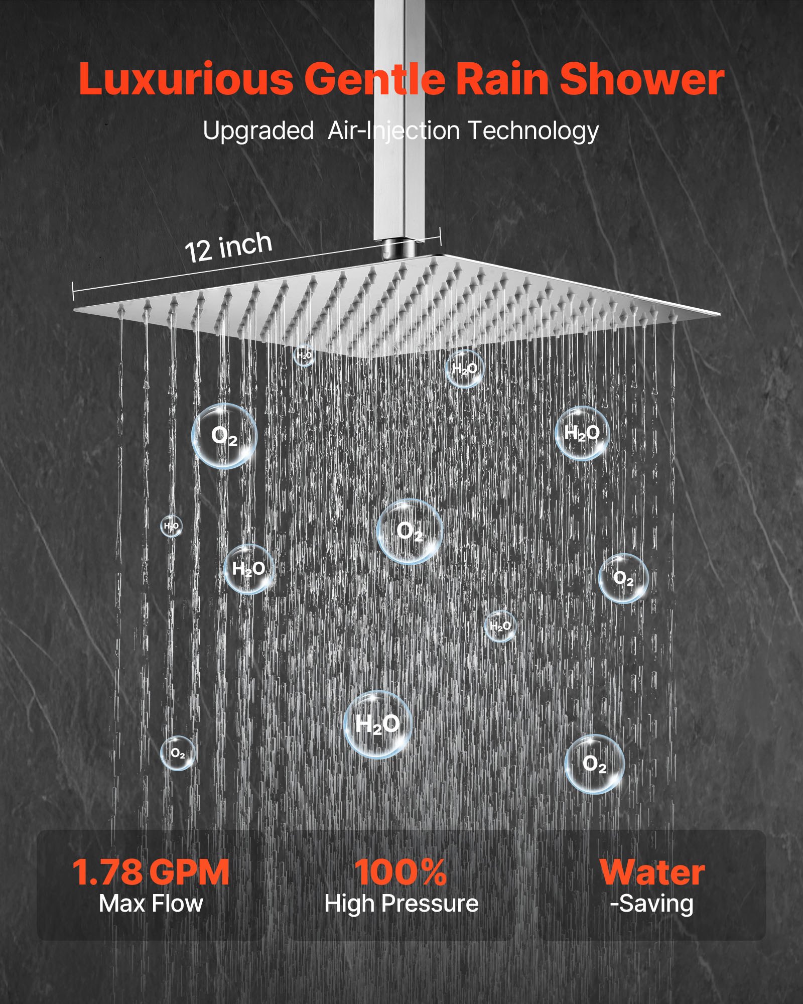 High-Pressure Shower: Our dual-function shower system provides a luxurious experience with air-injection technology, ensuring high pressure even under low water conditions. Save water with 1.78 GPM flow rate, offering a spa-like, relaxing shower