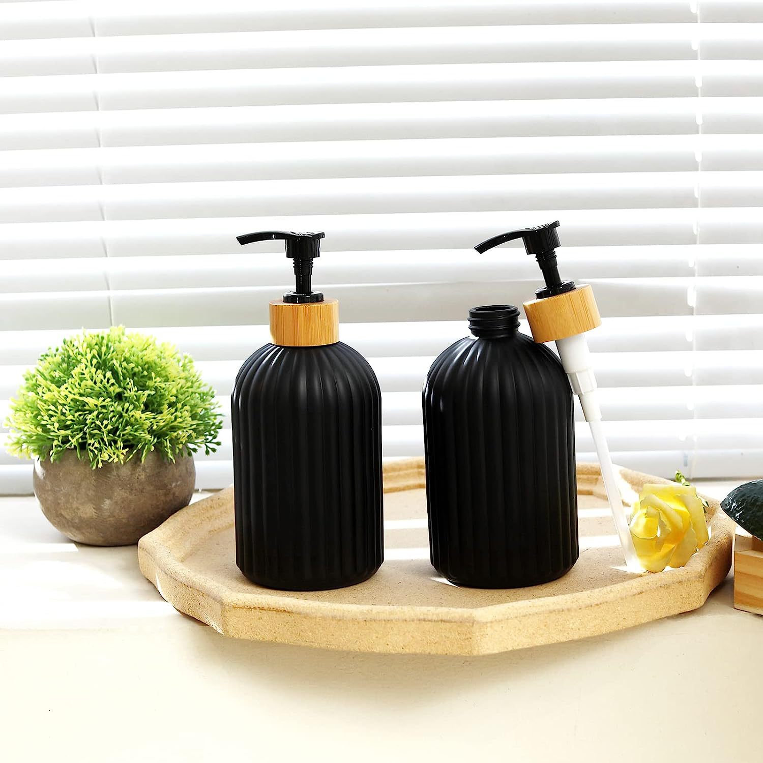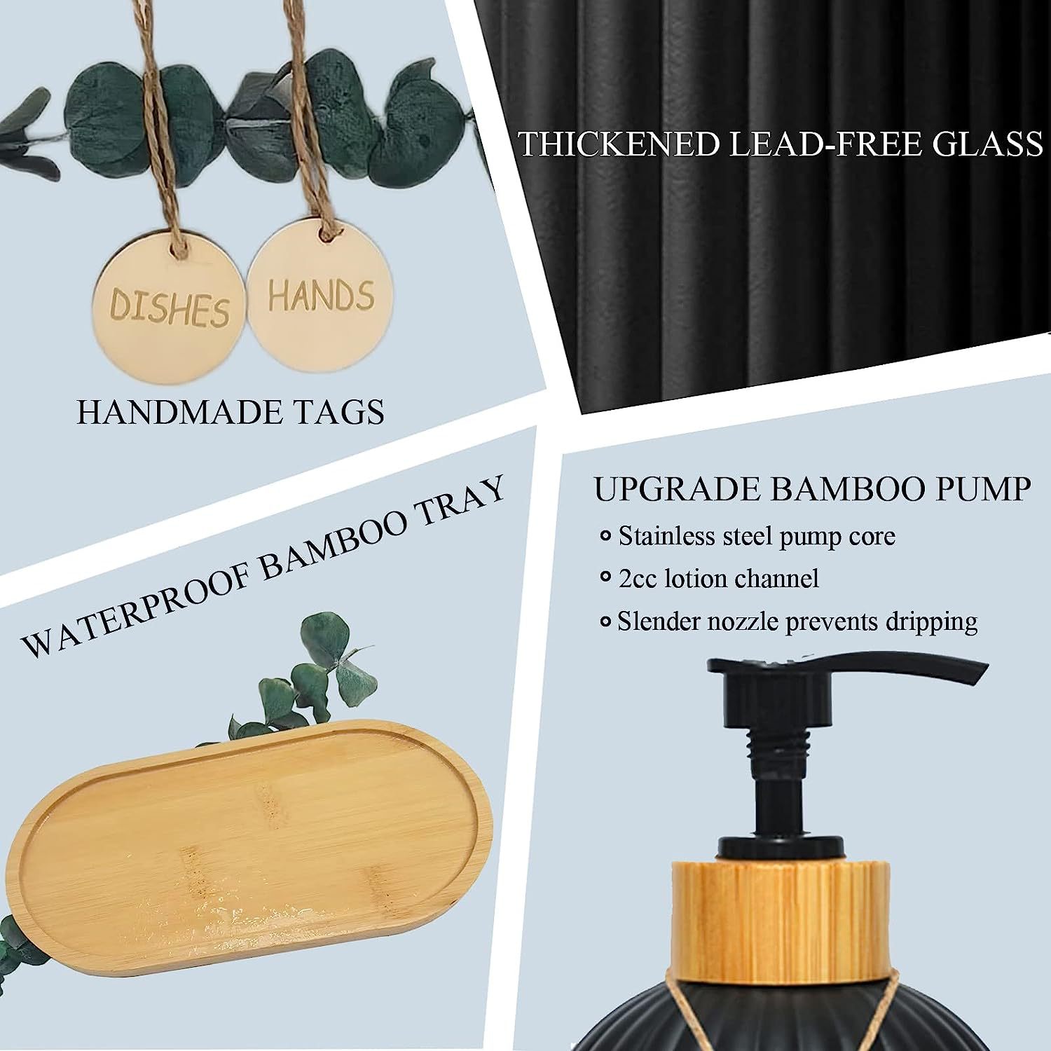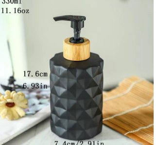 C: Diamond matte black + bamboo and wood ring press pump