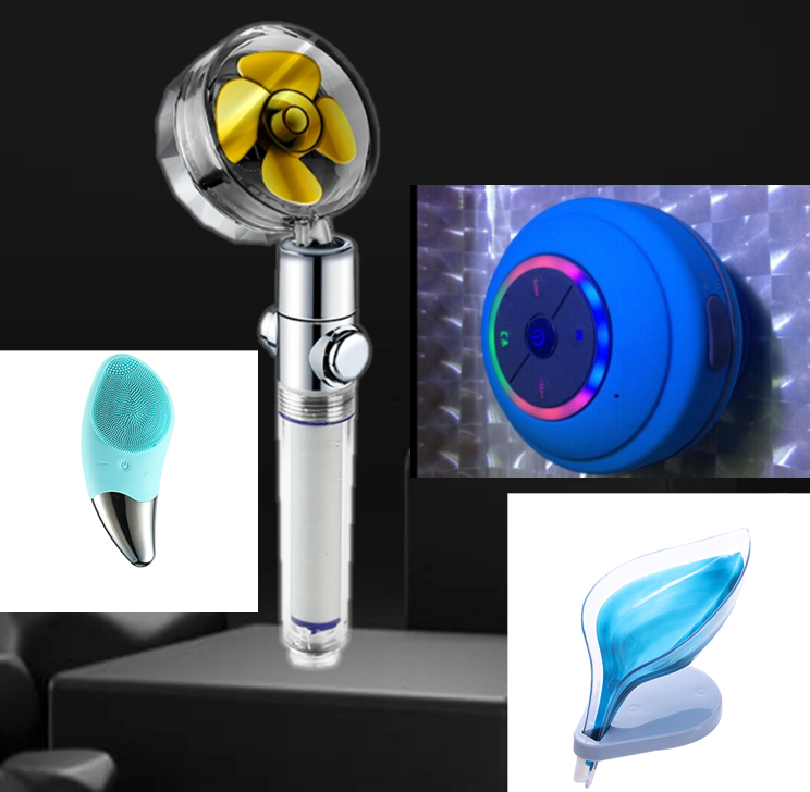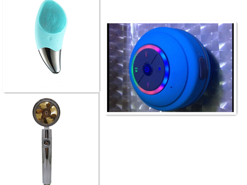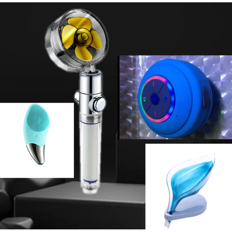 Soap Holder Sink Sponge Drain Box Creative Suction Cup*1Charging silicone cleansing instrument*1Mini Waterproof LED Speaker*1Propeller Driven Shower Head With Stop Button And Cotton Filter Turbocharged High Pressure Handheld Shower Nozzle*1