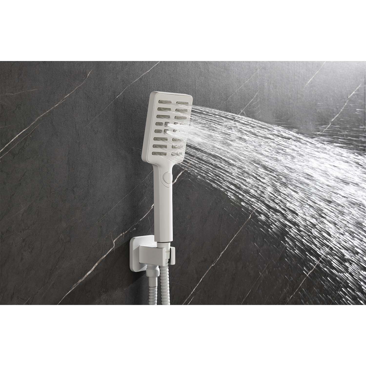 Wall-mounted rain shower systems have clean lines and a stylish appearance that perfectly match any bathroom style. This shower system is made of brass and high-quality stainless steel for durability. The shower head adopts a self-cleaning silicone nozzle, so the water outlet will not be blocked and is easy to clean. When taking a shower, you can also choose different shower functions, allowing you to enjoy a variety of shower experiences.