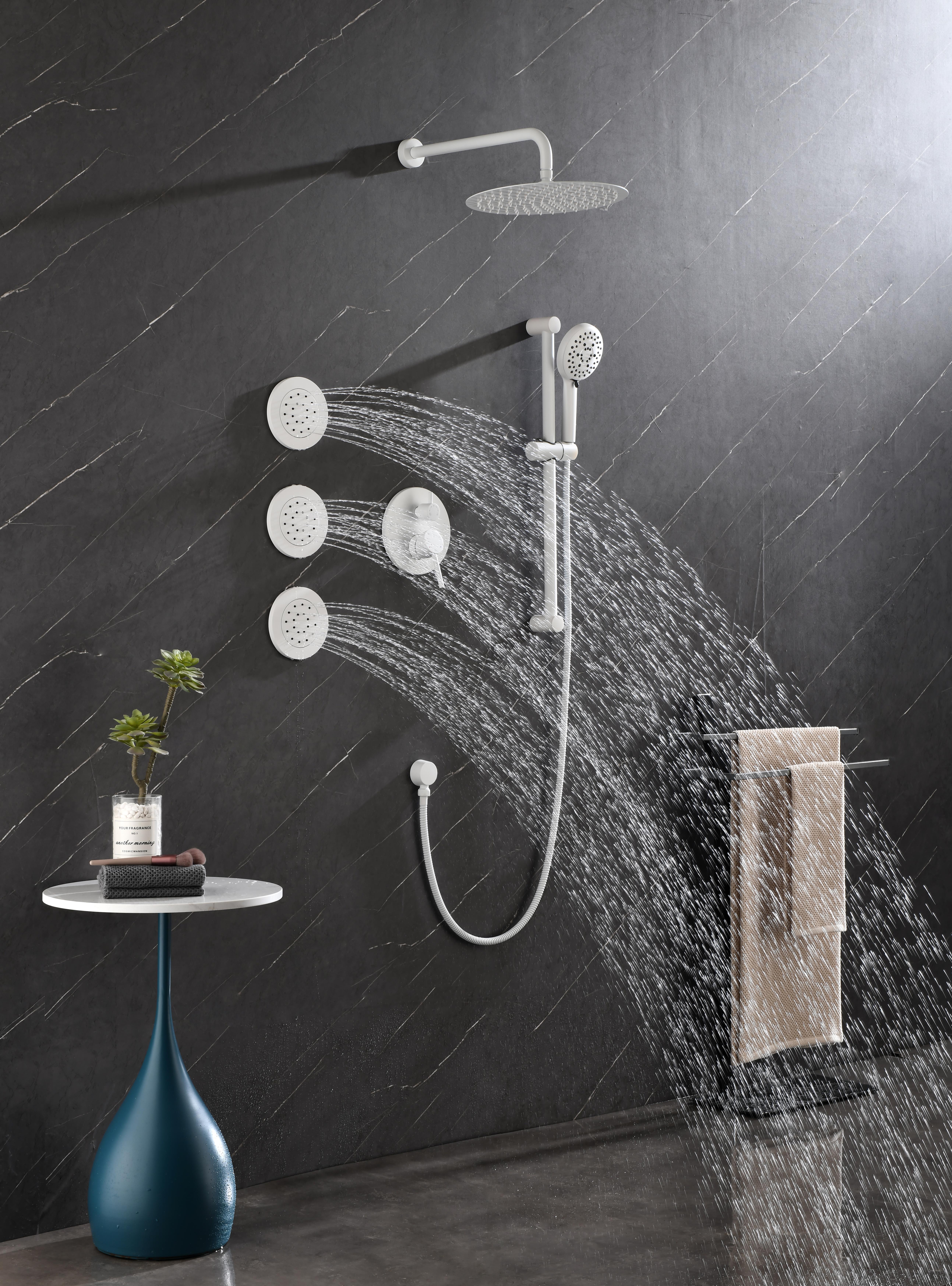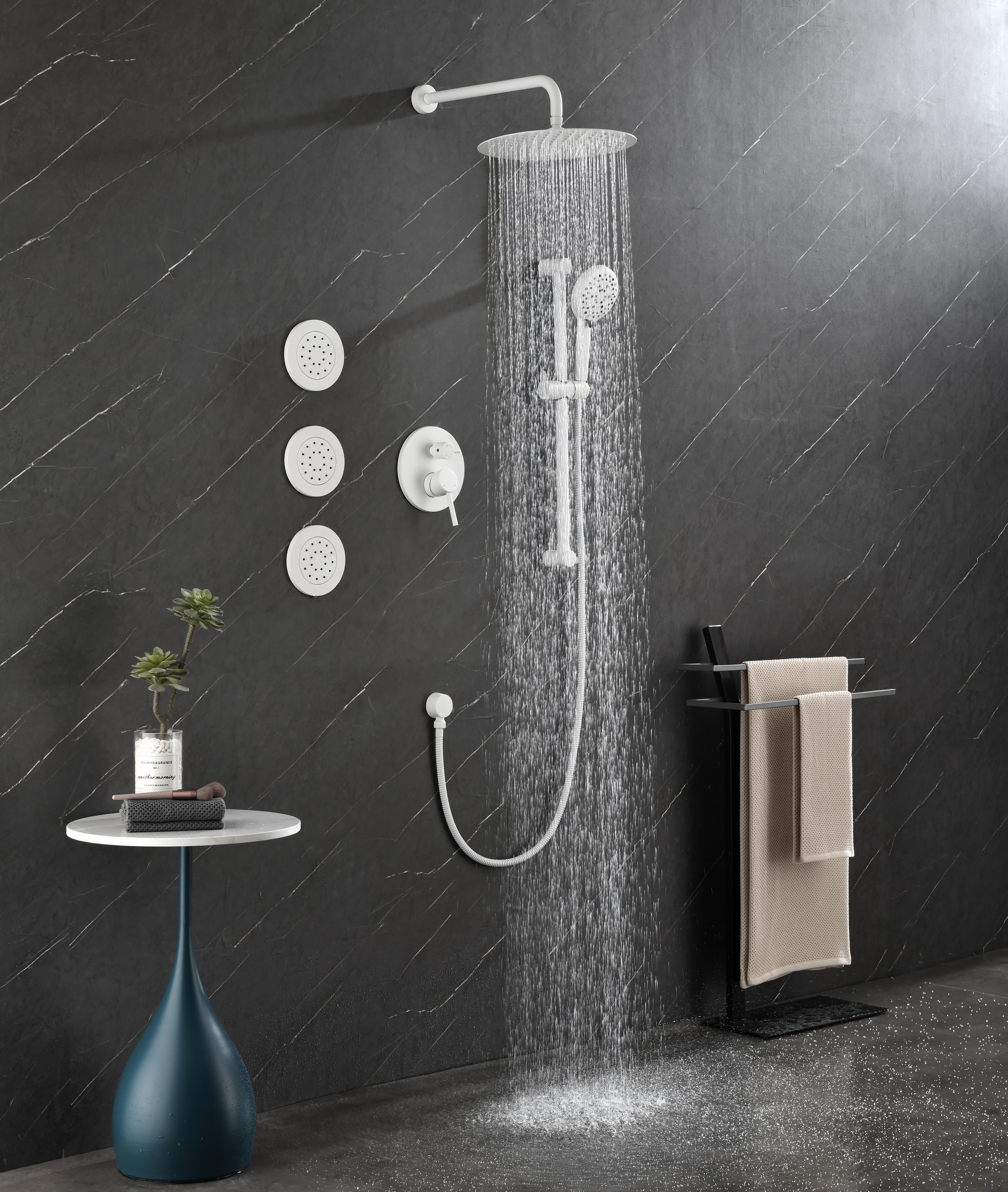 Product Name:Shower System with Shower Head, Hand Shower, Slide Bar, Bodysprays, Shower Arm, Hose, Valve Trim, and Lever Handles