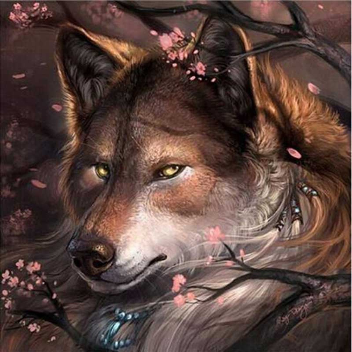 Shy Wolf And Flower Diamond Painting Brand New DIY Round Drilling Home Decoration KBL