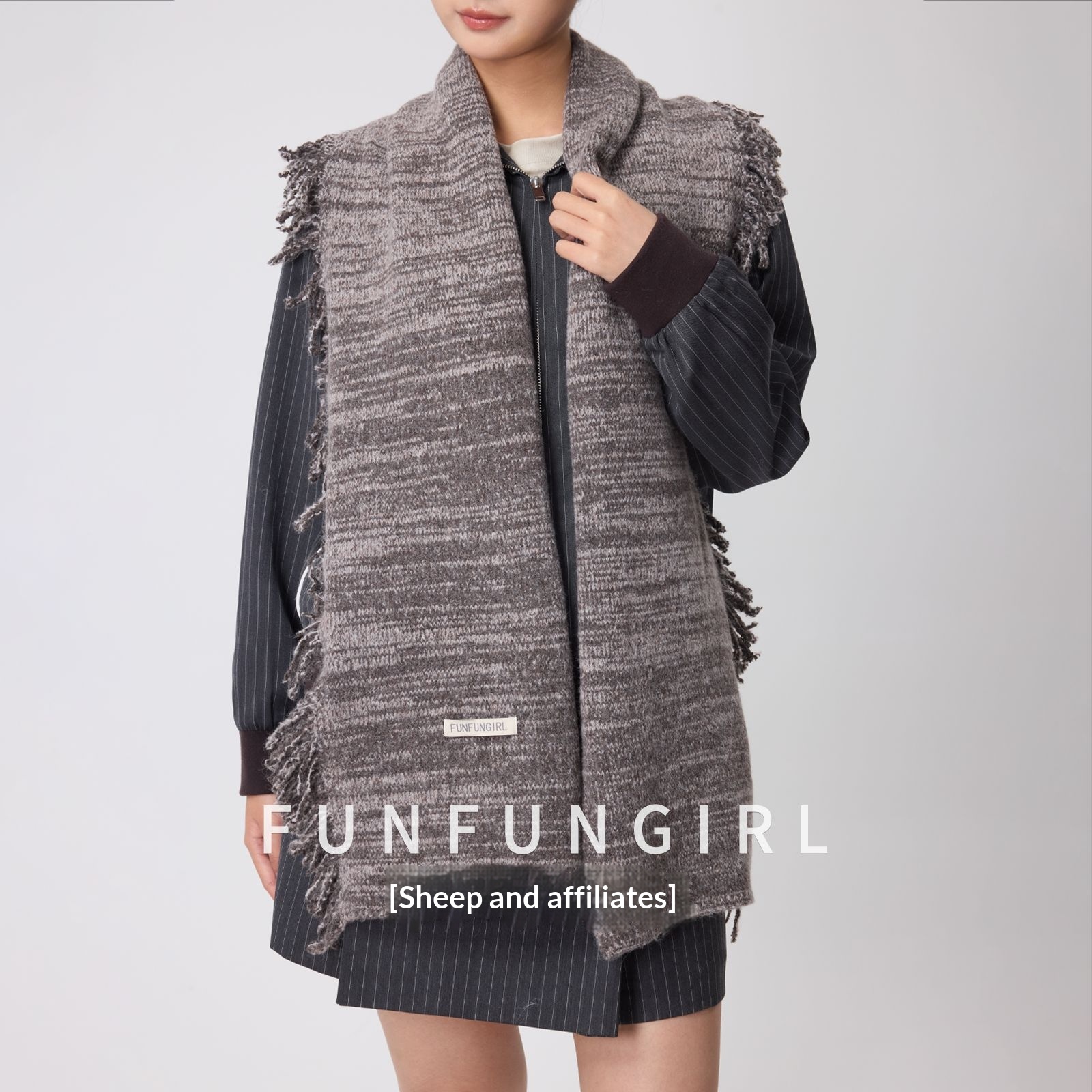 Side Fringe Wool Scarf Simple Casual Thickened Neck Warmer