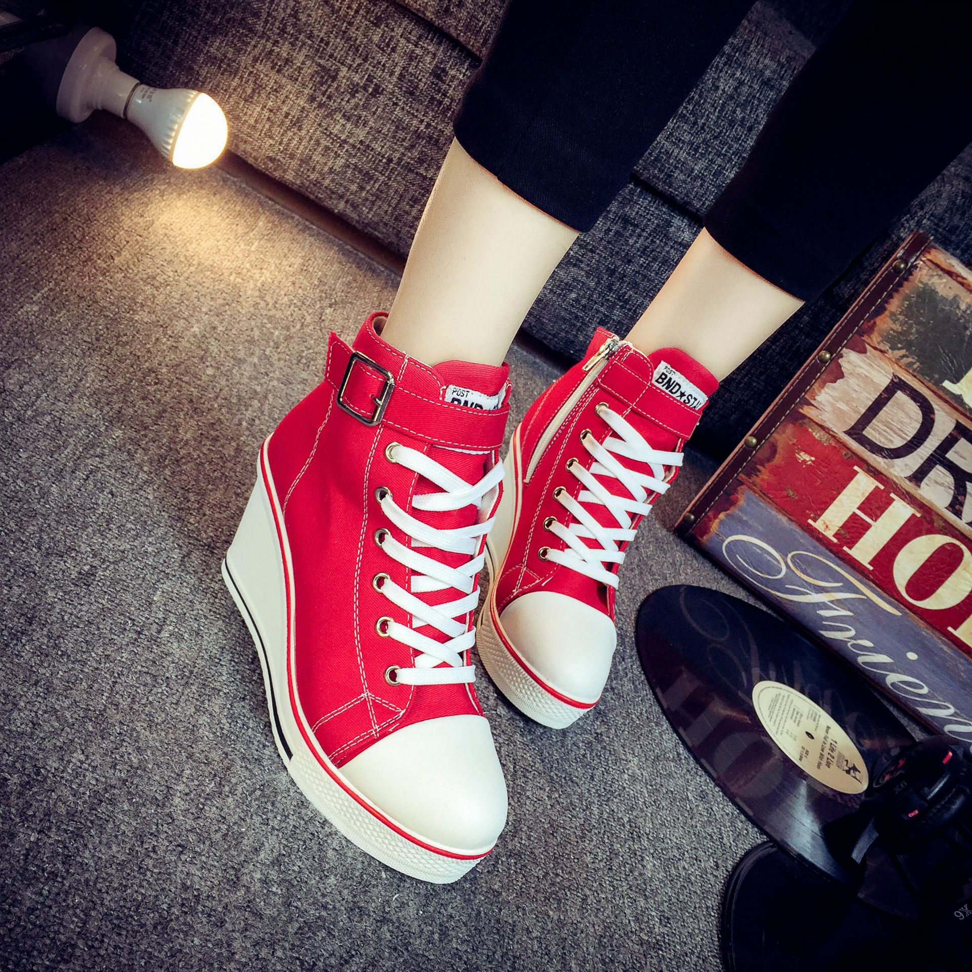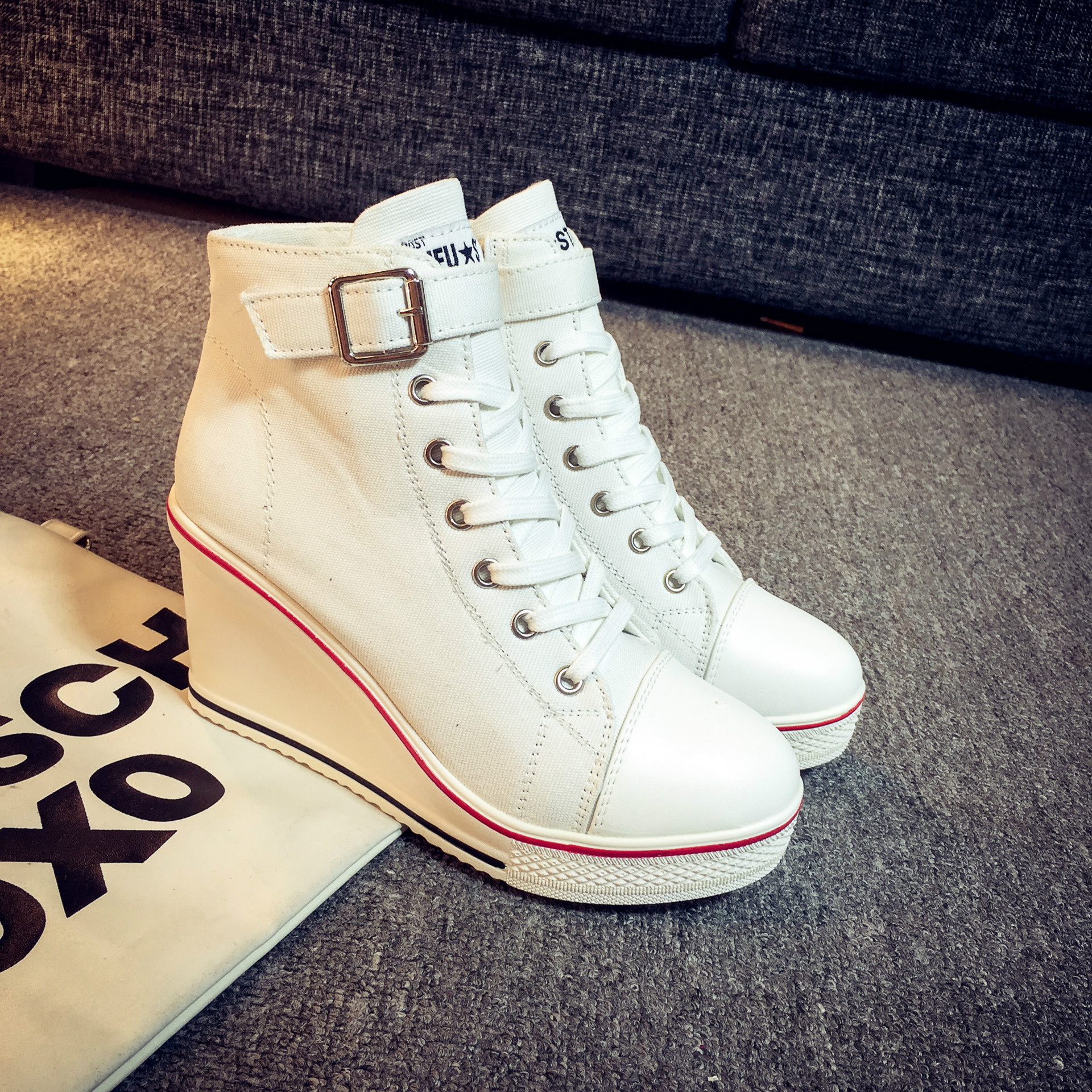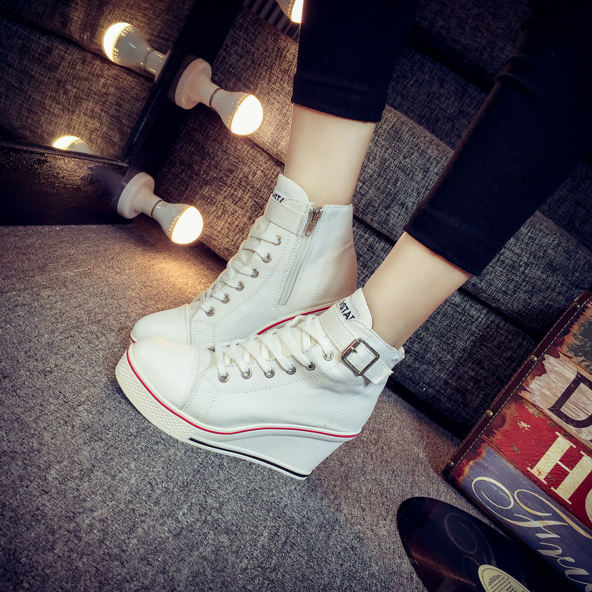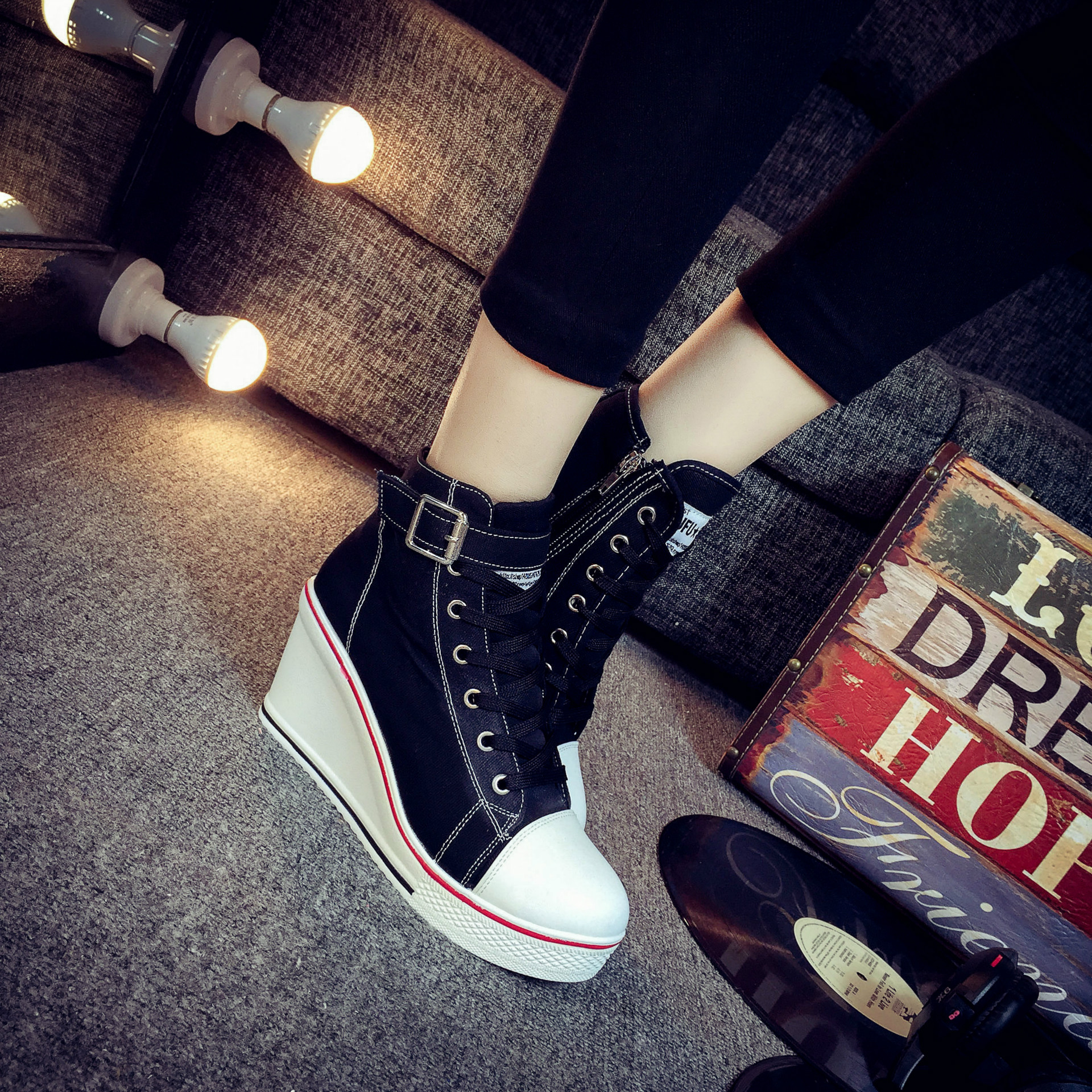 Color: white, red, black, pink ;, denim blue, leopardSize: 35,36,37,38,39,40,41,42,43Heel shape: thick heelInside material: cotton patternColor matching: upper material
