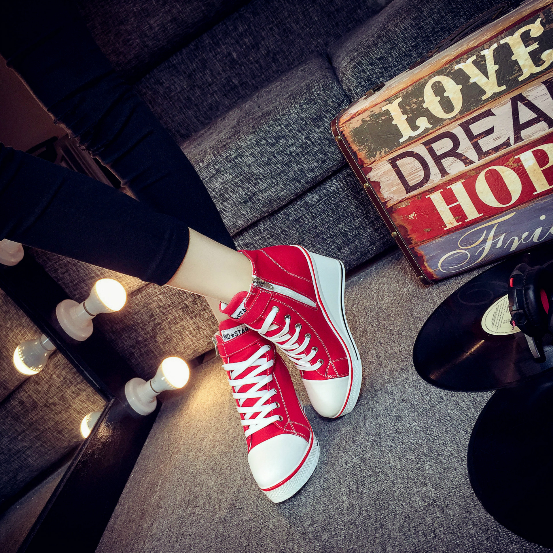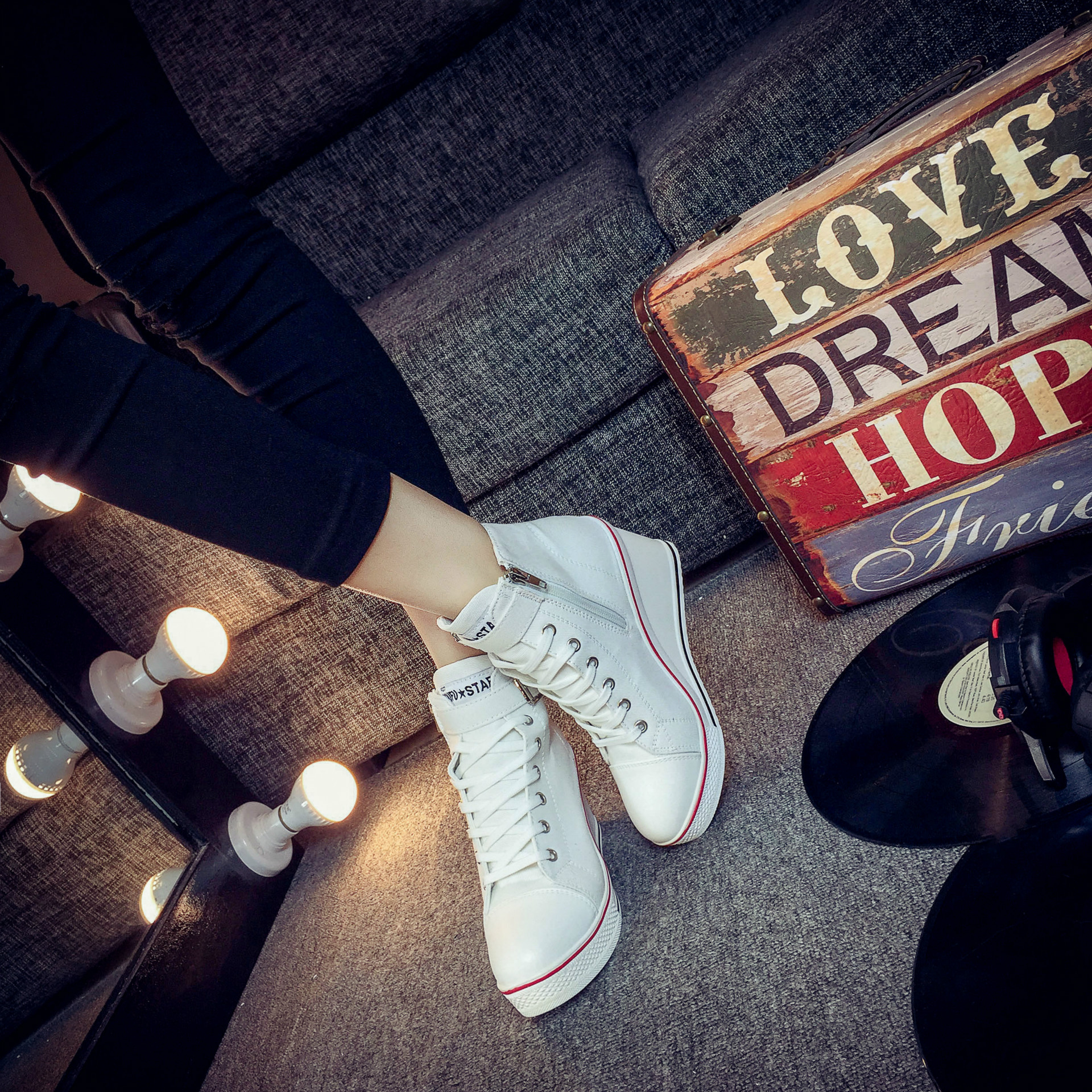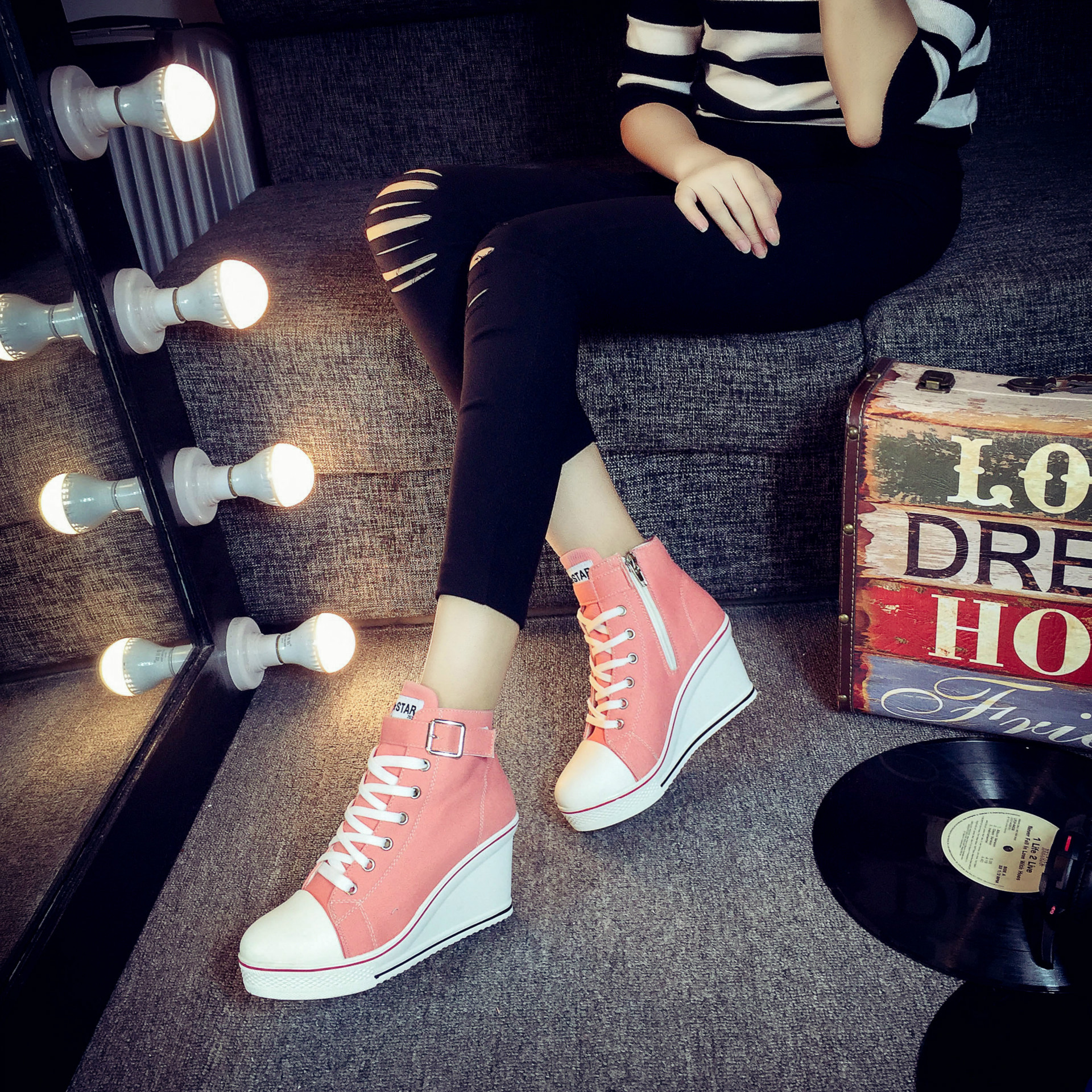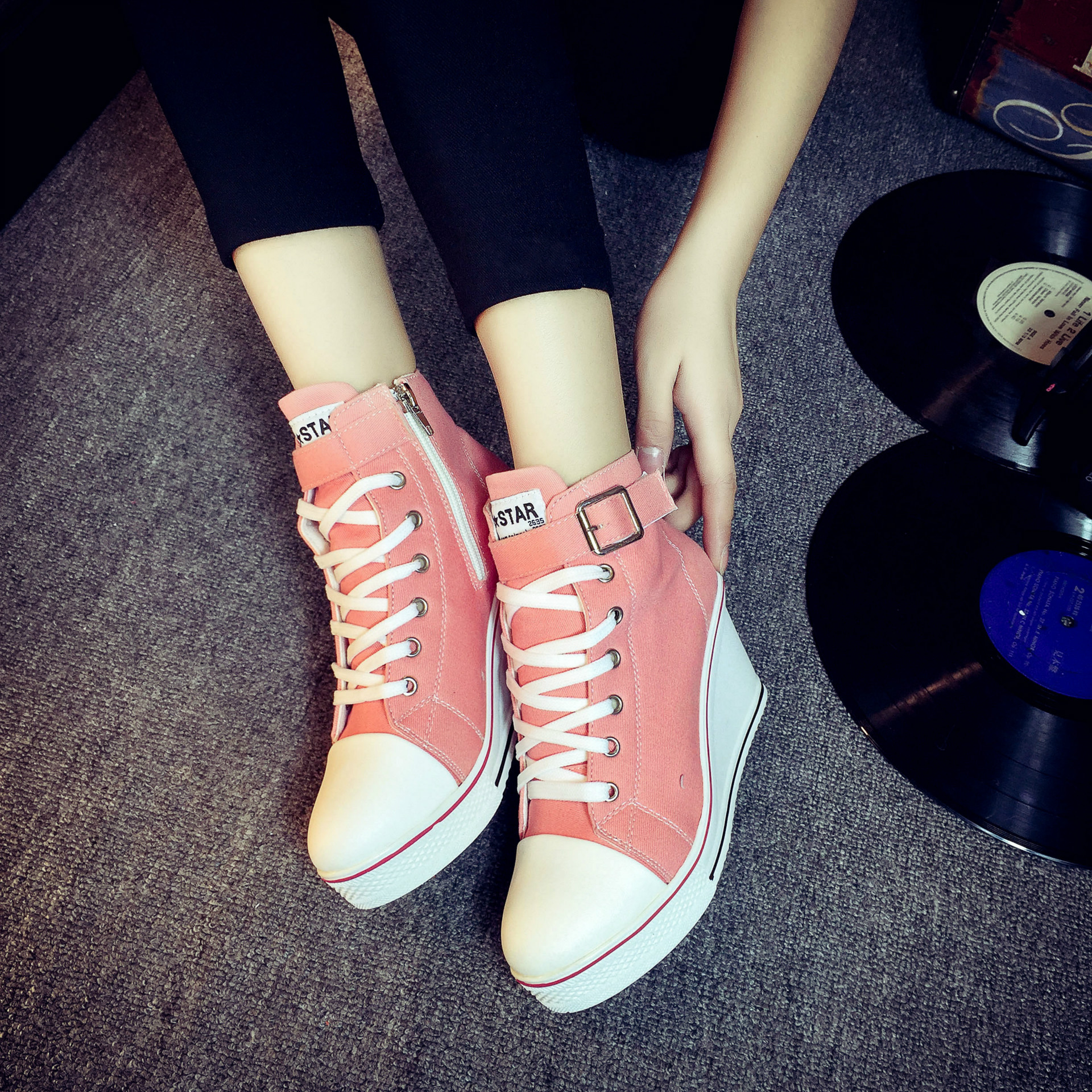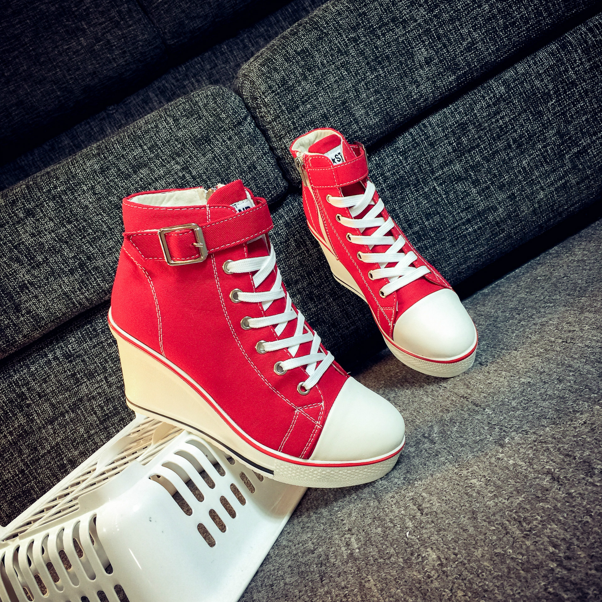 Color: white, red, black, pink ;, denim blue, leopardSize: 35,36,37,38,39,40,41,42,43Heel shape: thick heelInside material: cotton patternColor matching: upper material