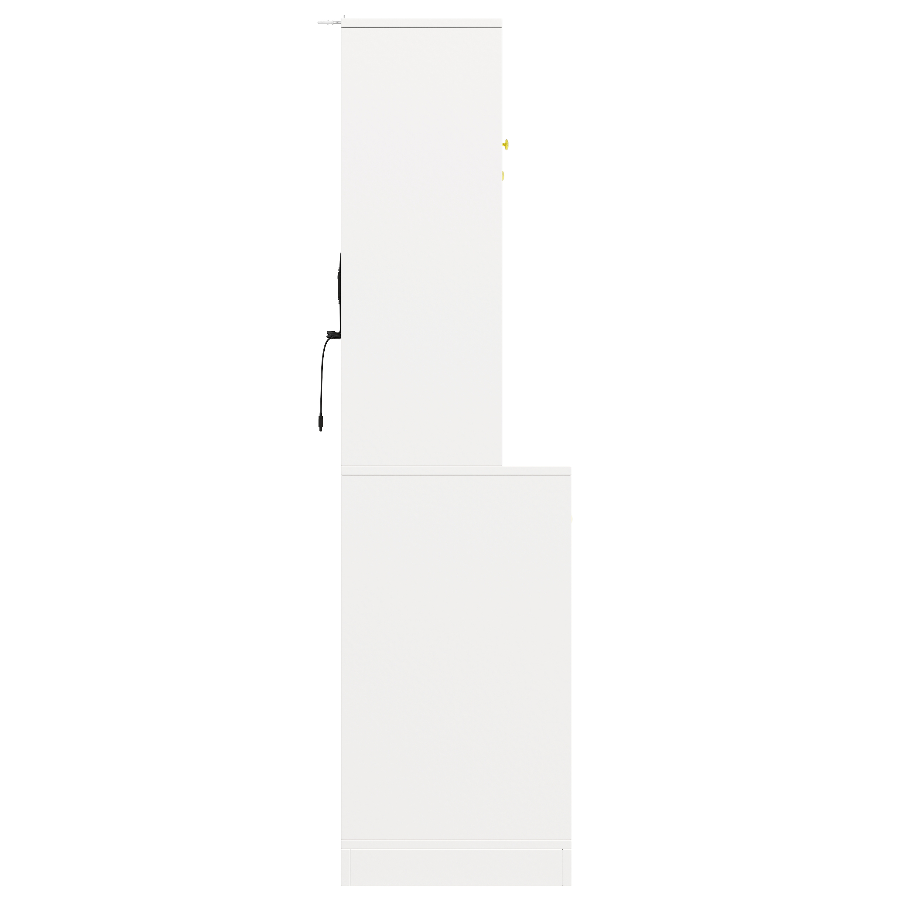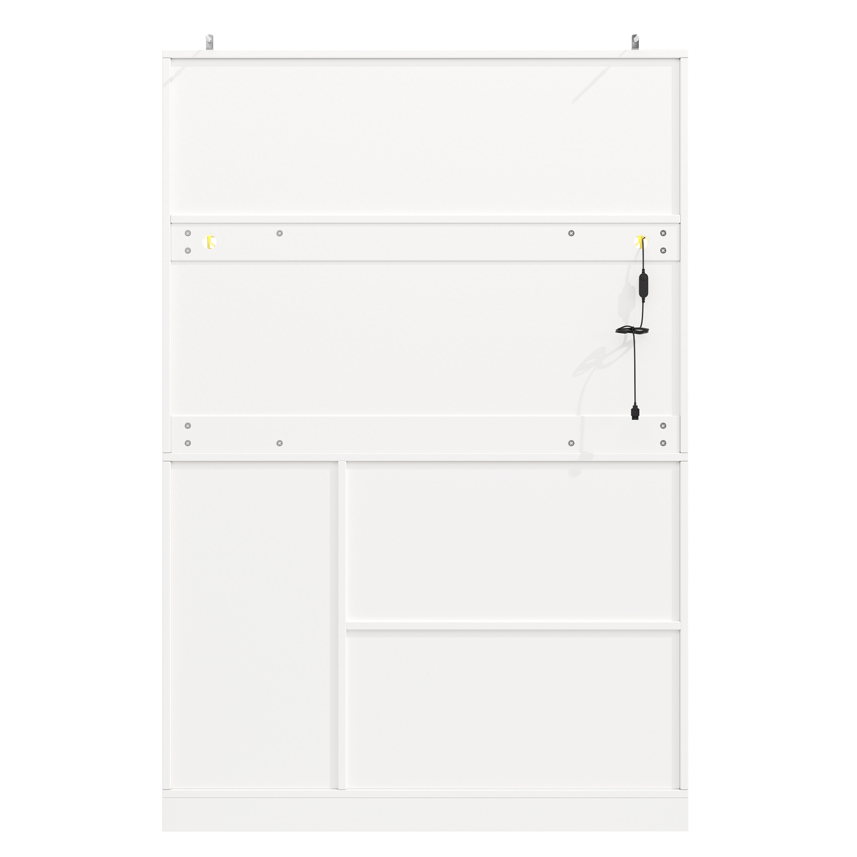 The entire cabinet is made of high-quality MDF boards, stable, durable and easy to clean. The door handles are made of high-quality, rust-resistant metal, combining aesthetics with functionality. A included anti-tip system allows secure wall mounting, which is especially important for households with pets or children.