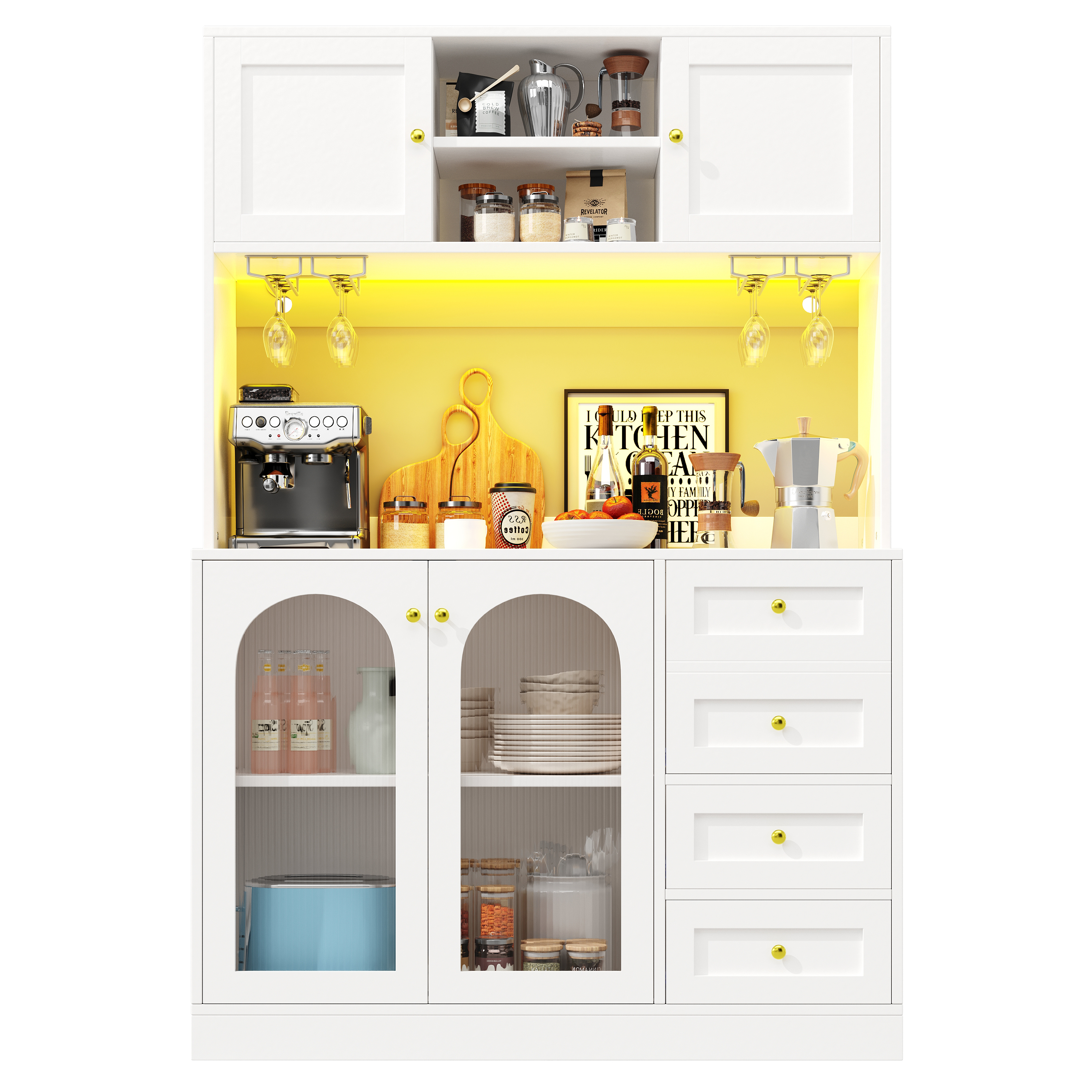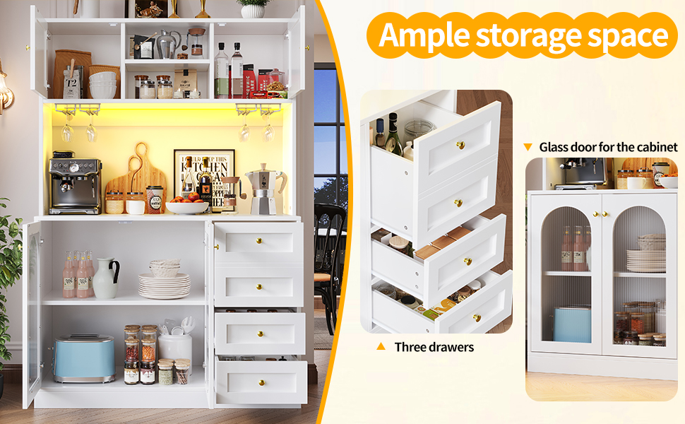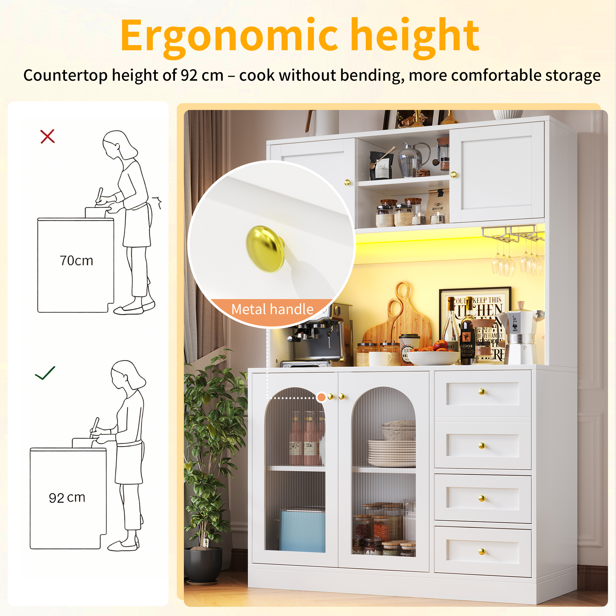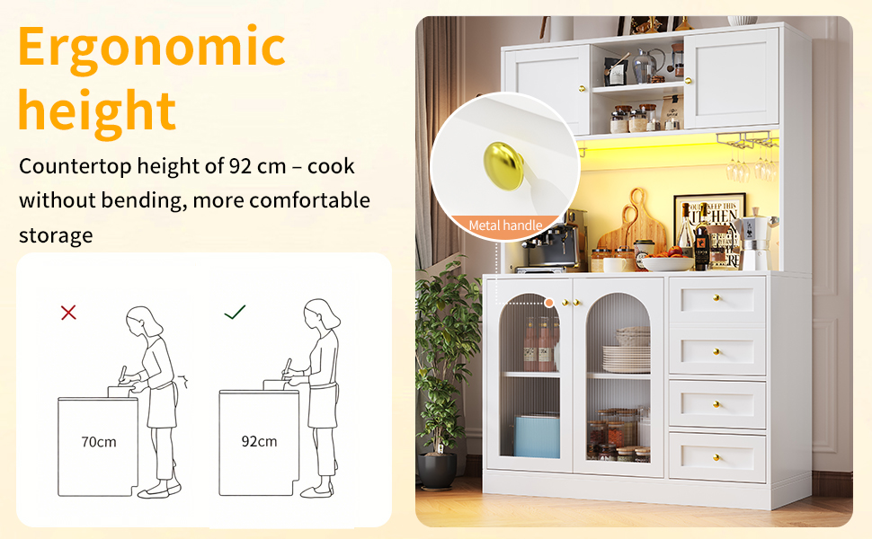 Multiple storage options – independent cabinets, spacious drawers and door inner shelves – meet diverse storage needs. The large, flat countertop has a practical height, suitable for both storing daily utensils and displaying decorative items.