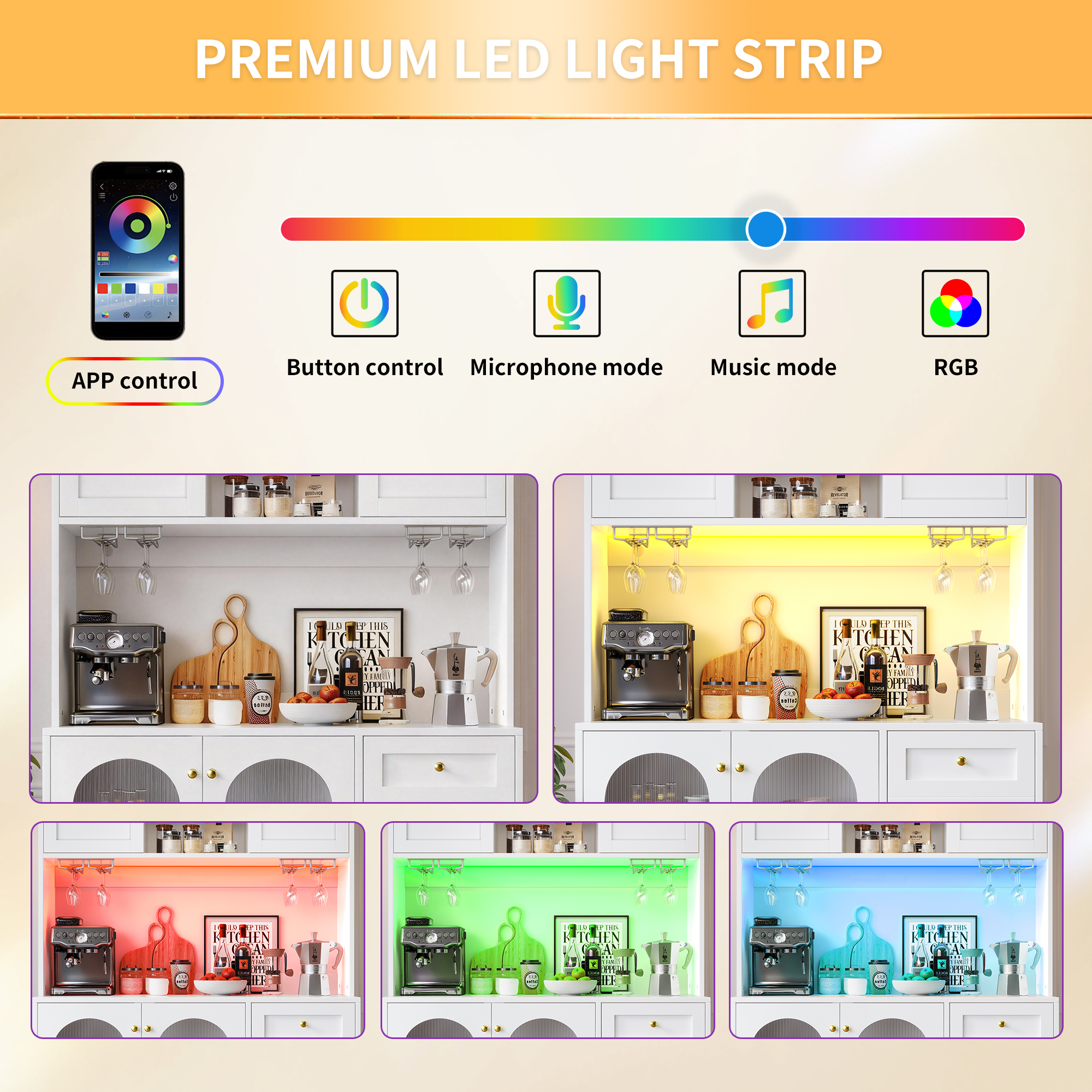 A built-in LED light strip can be controlled via a smartphone app to adjust color, brightness and more – modern comfort is at your fingertips.