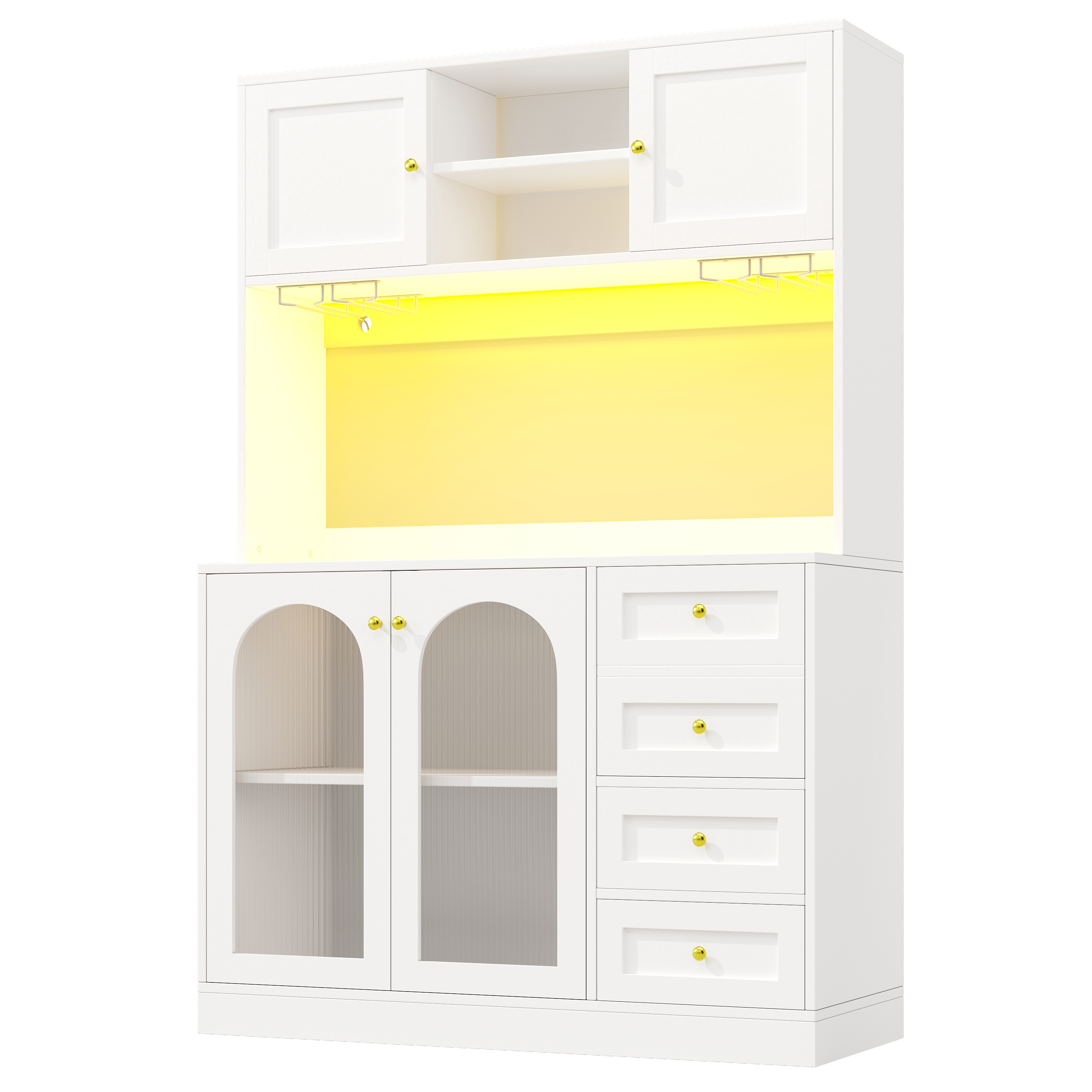 Product Name:Sideboard / Storage Cabinet / Kitchen Cabinet / Buffet Cabinet, 120x40x188cm, Farmhouse Style, 4 Doors, with LED Light Strip & Drink Holders, Black/White (Fluted Glass Doors)