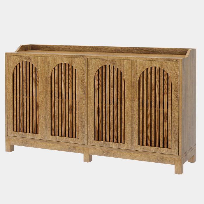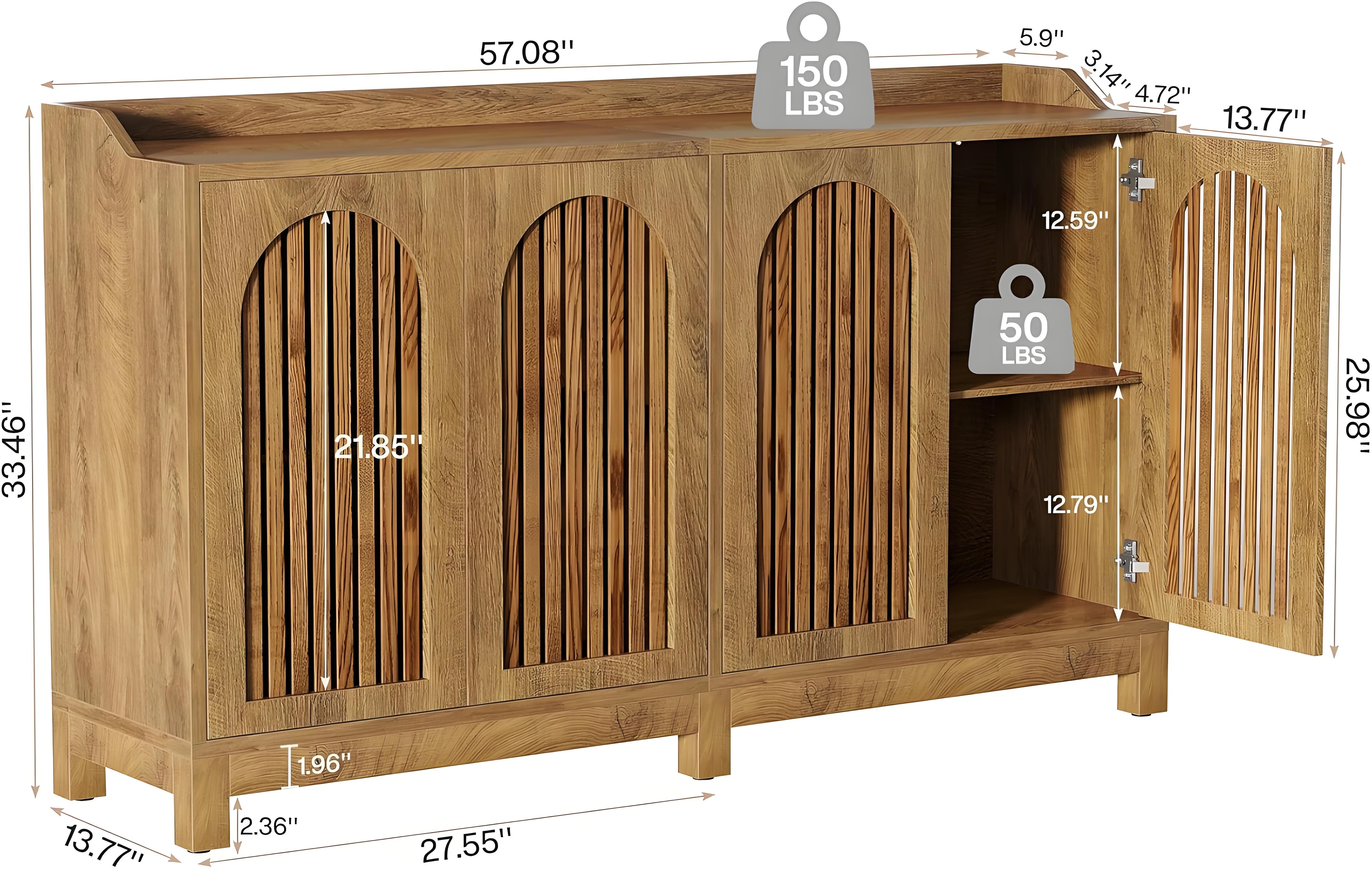 [Optimal Storage Solution] With dimensions measuring 57" L x 13.8" W x 33.4" H, our buffet features a four-door cabinet and combines a spacious tabletop with ample internal storage space. From storing dinnerware, wine bottles, cutlery to other essentials, this buffet cabinet is the ultimate solution to your storage needs.