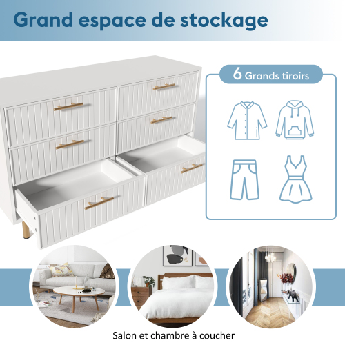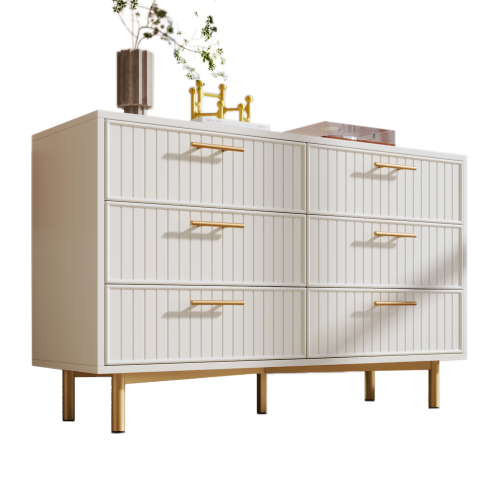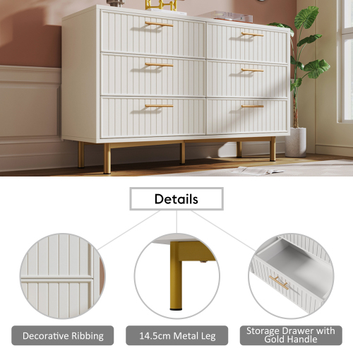 Product Name:Sideboard Cabinet for Living Room, Chest of Drawers with 6 drawers, White, 40D x 120W x 75H CM