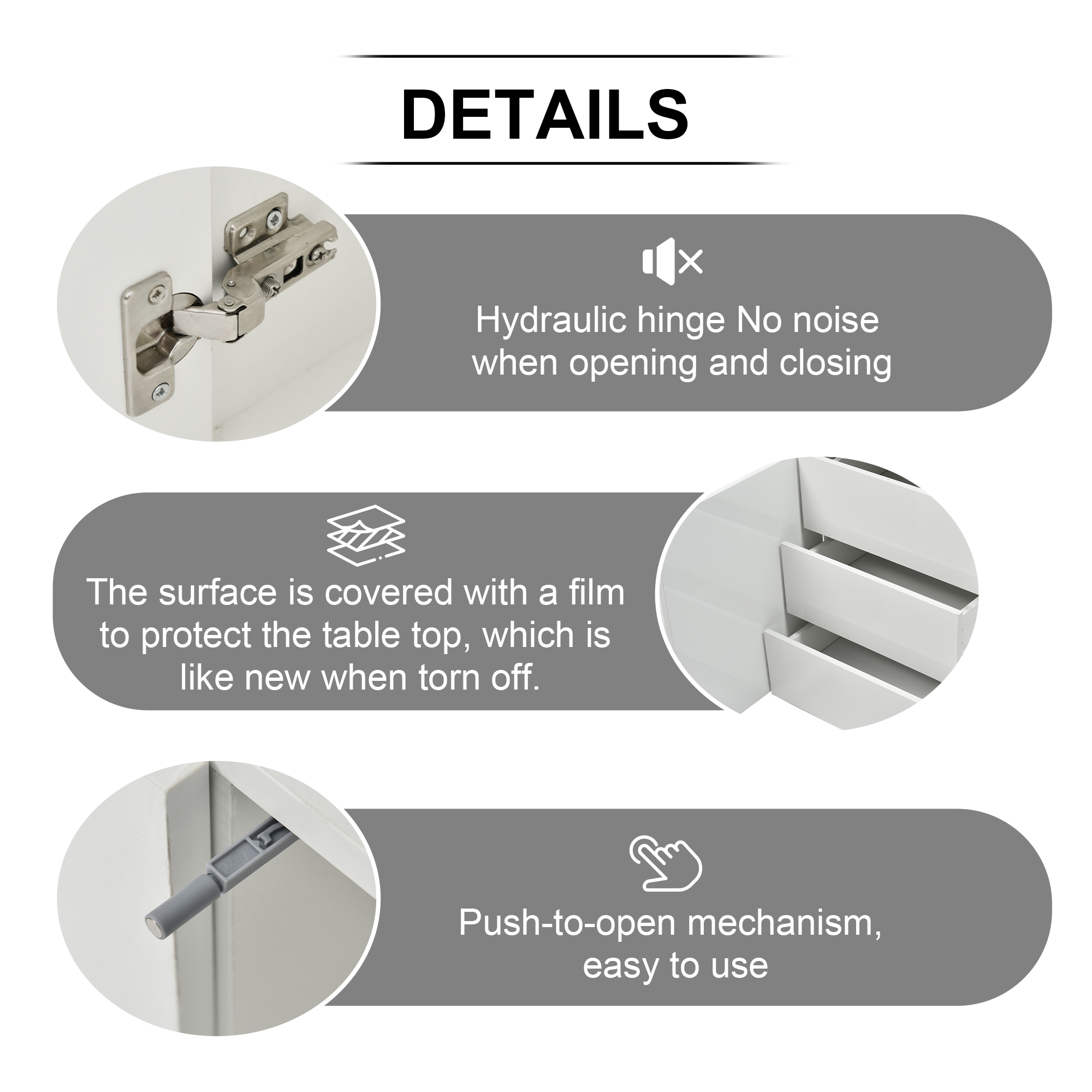 | Special Features | Handleless, push-to-open mechanism; Hydraulic hinge without noise |