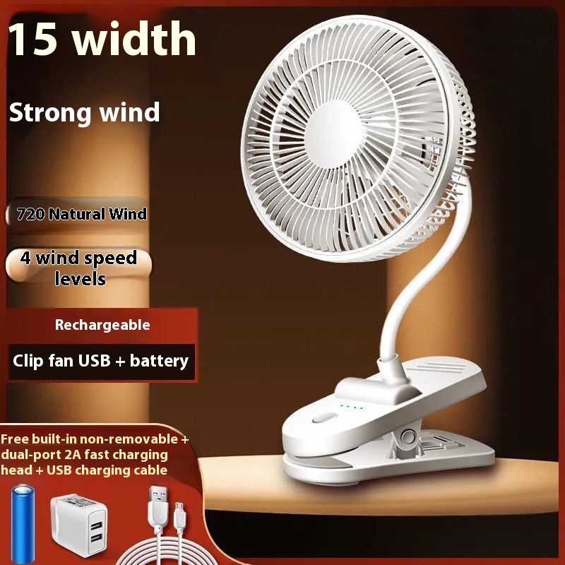 Style 3:15 face width long neck clip fan lithium battery bag for charging,