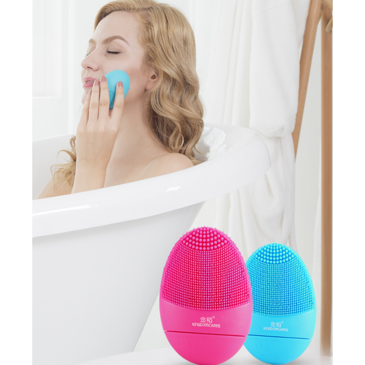 Deep Clensing silicon head in an amazingly clean feeling of high vibration, operation Gentle skin care provides a clean, soft and soothing feel The waterproof design brush is waterproof and washable to avoid dust accumulation.