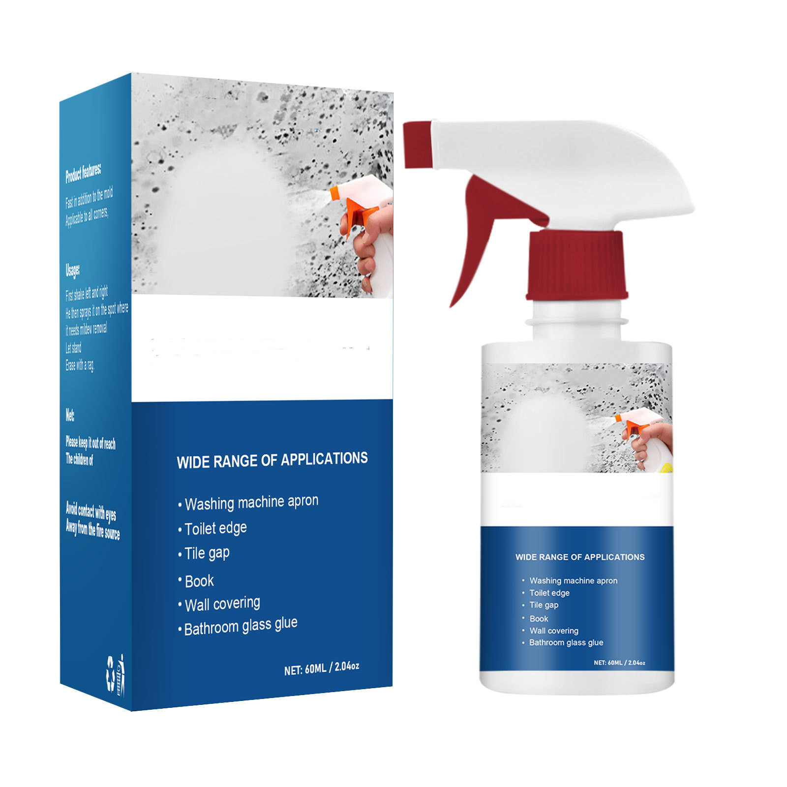 Product Information:Net content: 60mlSize: 14x3.5cmMaterial: PEBenefits: Remove mold stainsPacking list:Spray X1PCS