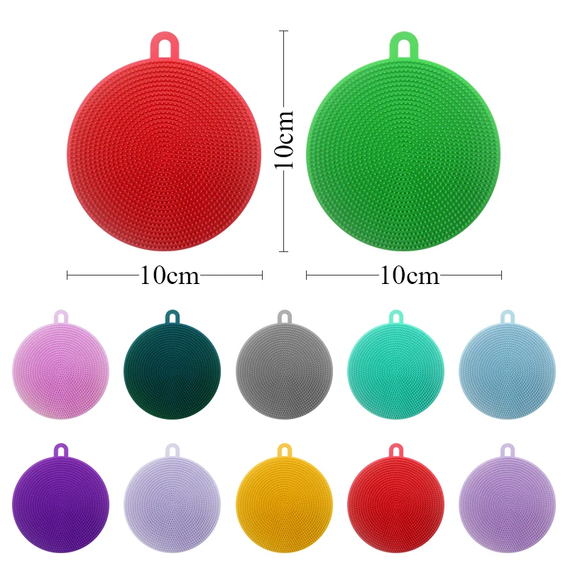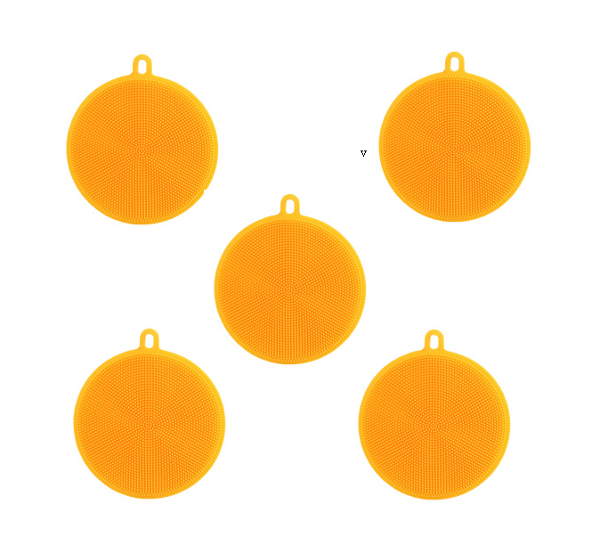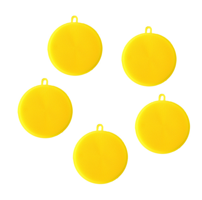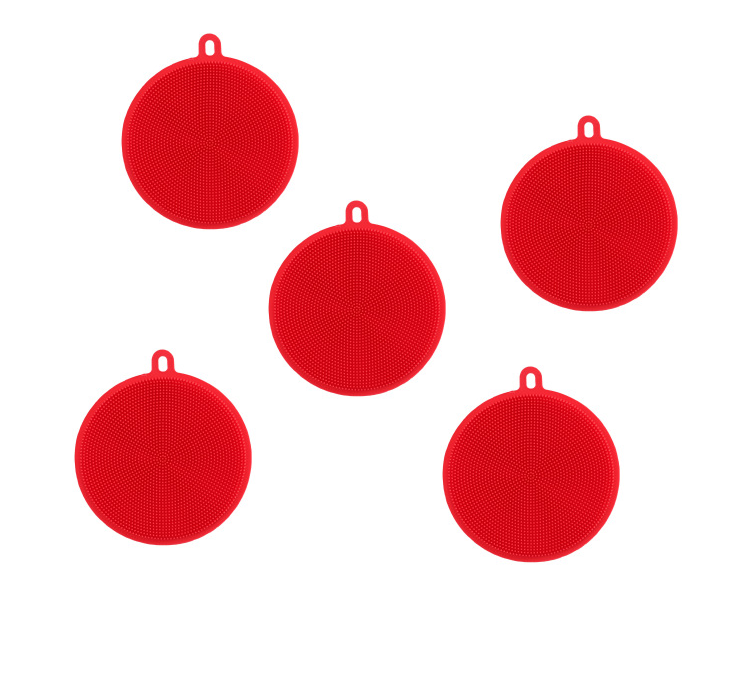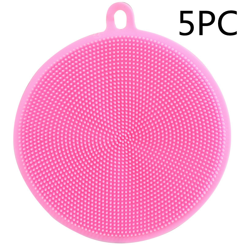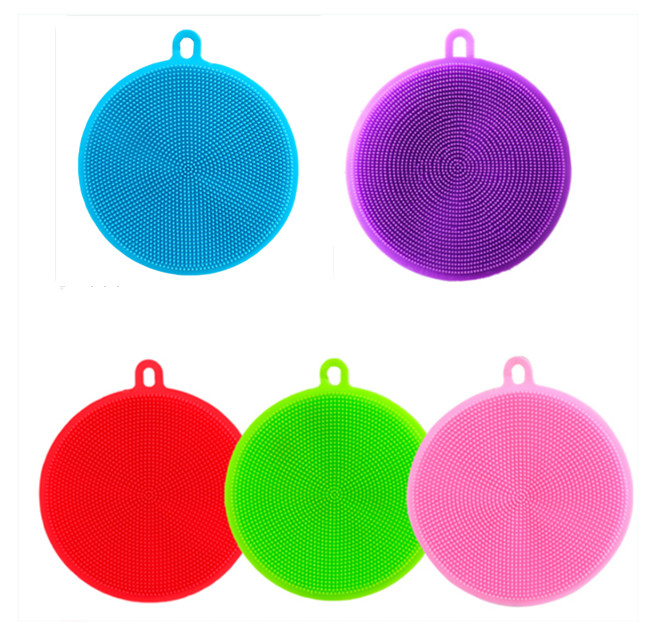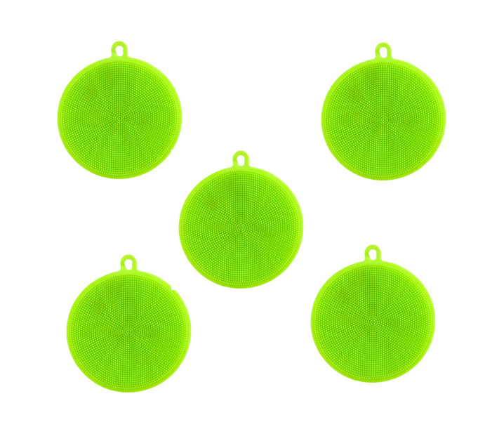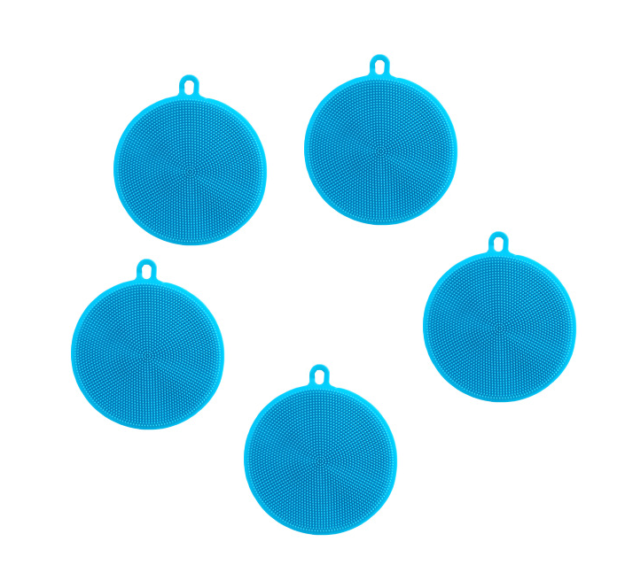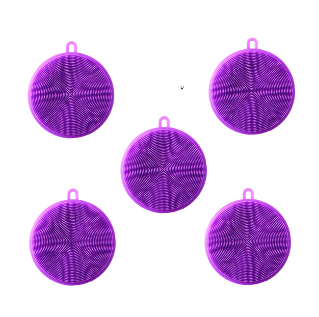 Five colors silicone dish sponge, blue, green, pink, purple, light purple.