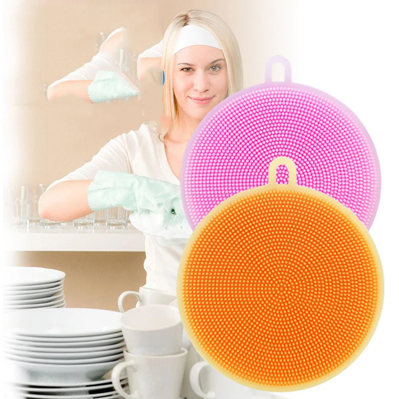 Made of High Quality FDA Approved Silicone. It could be used to wash dishes, glasses, vegetables and fruits.