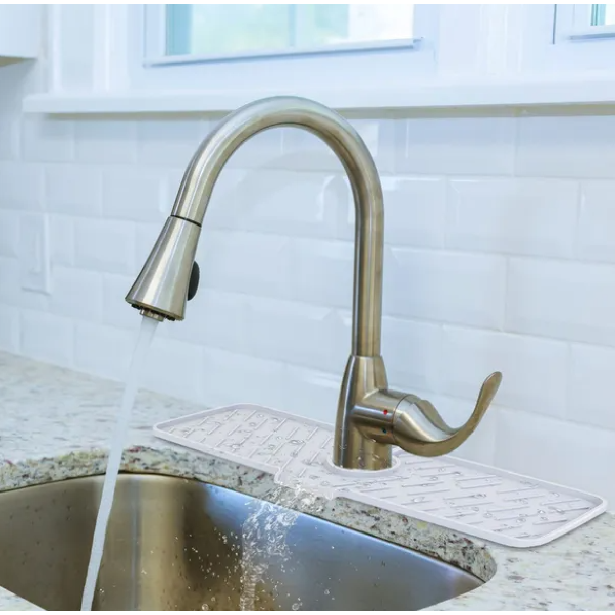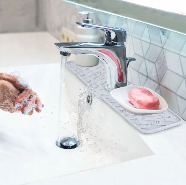 *Keep Your Countertop Dry*:Tired of wiping the countertop each time after usage? This faucet mat can catch water splashes caused by leaking faucet or washing; keeping your countertop clean and dry.