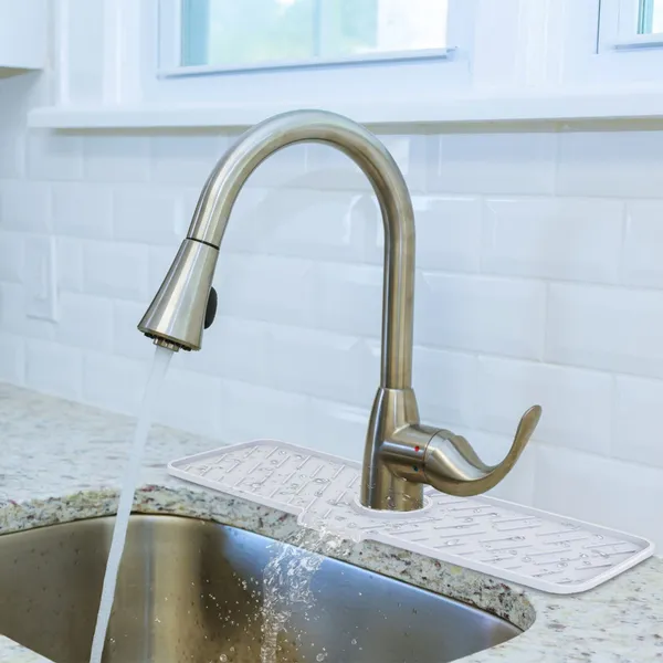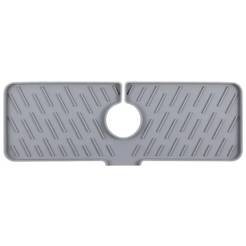 *Premium Silicone Material*:Made of food-grade silicone material; it’s non-toxic; reusable; and durable. Unlike the fabric mat on the market; there is no need to wash and dry the mat frequently as water splashes caught by the mat will be quickly drained to the sink. *Keep Your Countertop Dry*:Tired of wiping the countertop each time after usage? This faucet mat can catch water splashes caused by leaking faucet or washing; keeping your countertop clean and dry. *Anti-slip Design*:The silicone material keeps it from moving around when you put something on it. Besides; protrusions on the surface effectively increase abrasion; which allows the detergent bottle and cleaning tools to stand on it stably. *Easy To Install*:The opening design can easily fit faucet tube within 2.48in. Draining design helps gather water and drain it to sink in time. *Wide Application*:It’s suitable for the base of your kitchen sink; bathroom; farmhouse; RV or restroom to keep clean and dry. *Specifications*: