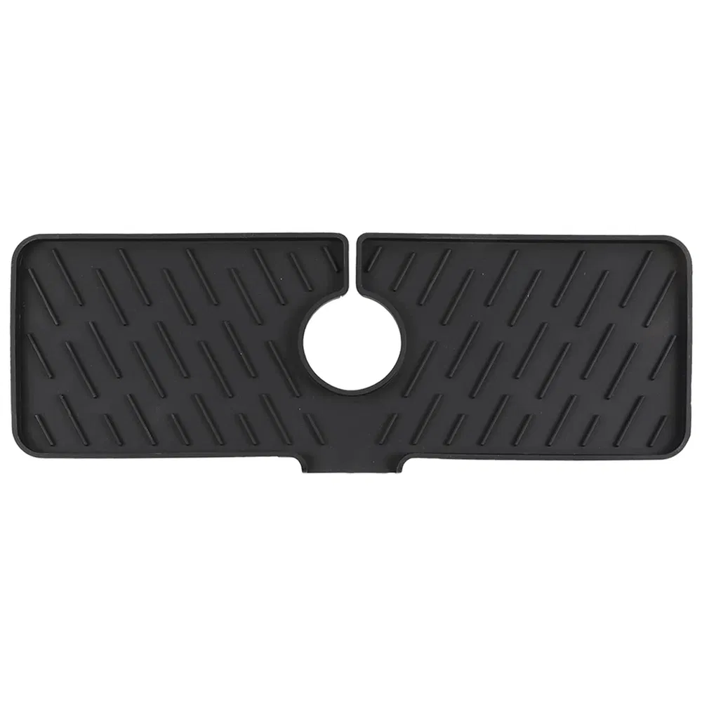 Product Type: Faucet Mat Color Options: Black/Grey Material: Silicone Central Hole Size: 6.3cm/2.48in Item Size: 44.7x16x1cm/17.6x6.3x0.39in Item Weight: 209g/0.46lbs *Package Lists*: