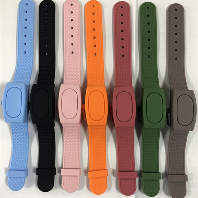 Color: blue, black, orange, pink, purple, green, grayMaterial: SiliconeSpecification: hand sanitizer bracelet