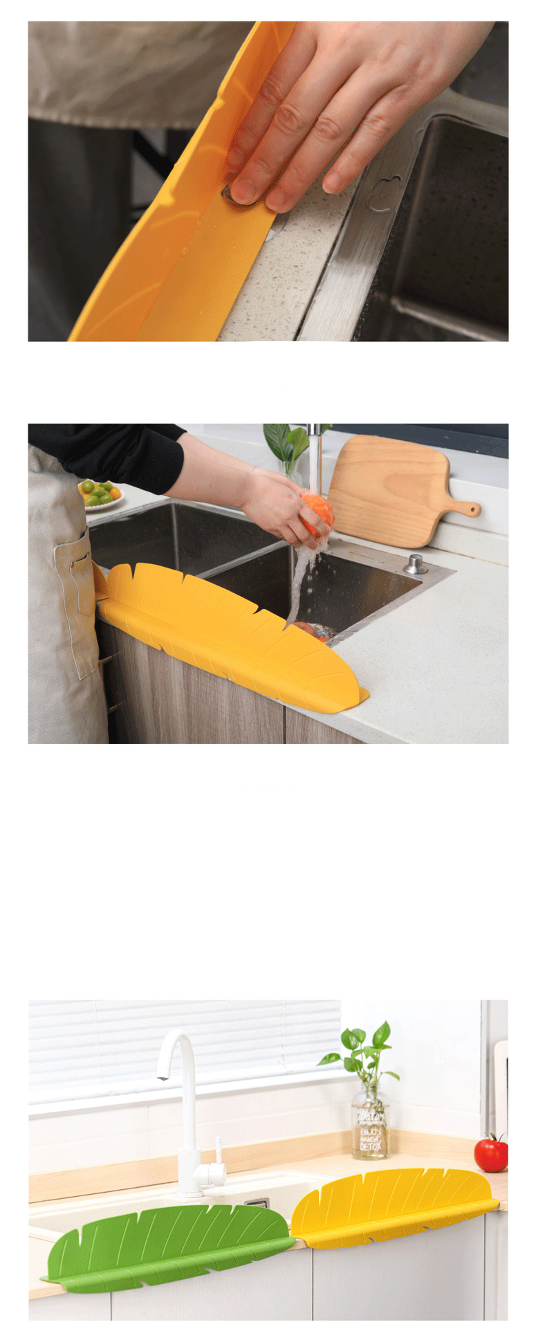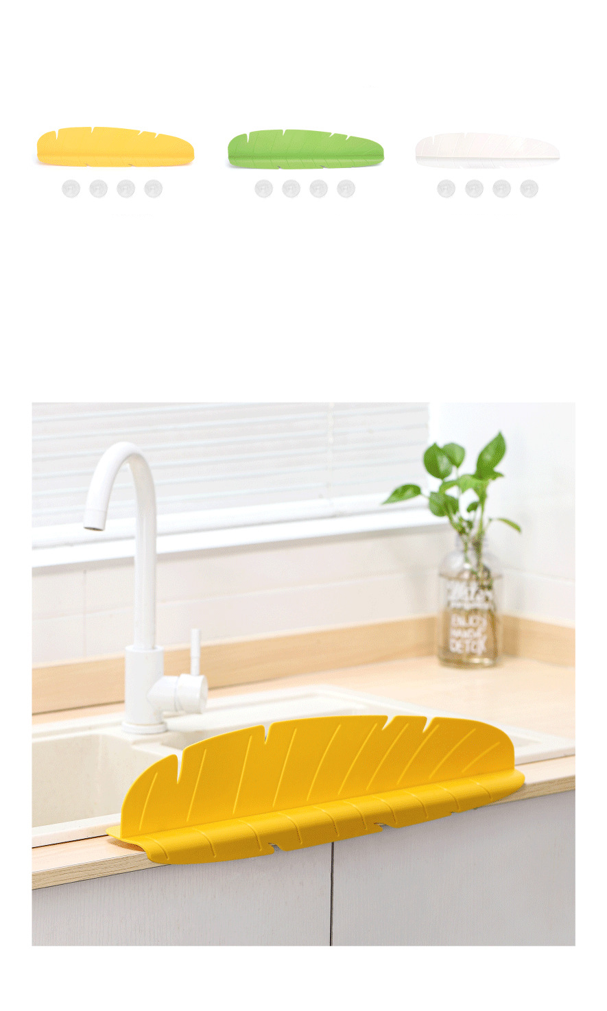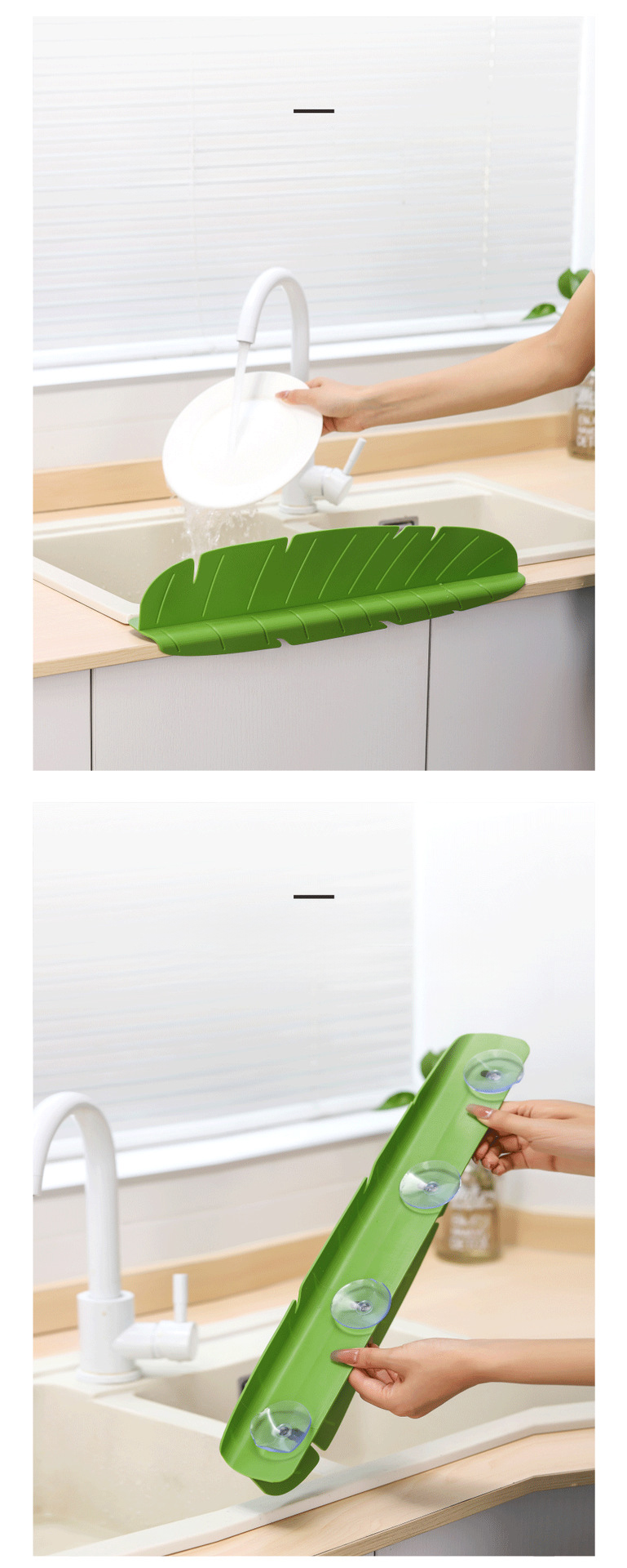 Kitchen Sink Water Splash Guards Soft Banana Leaf Shape Water Sink Flap Block with Suckers Oil-Proof Splash Proof Sink Access