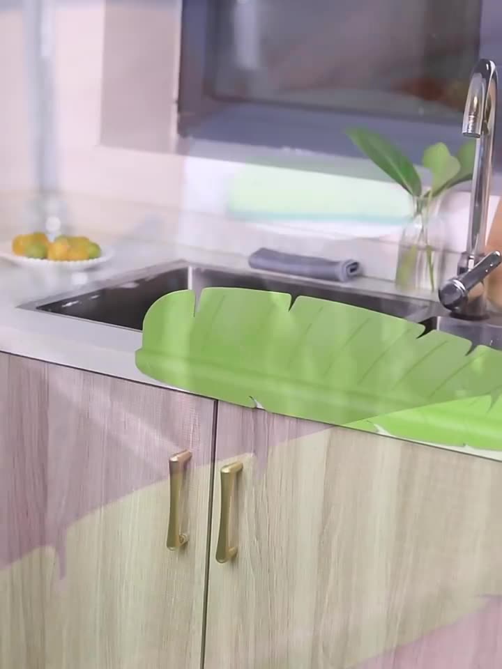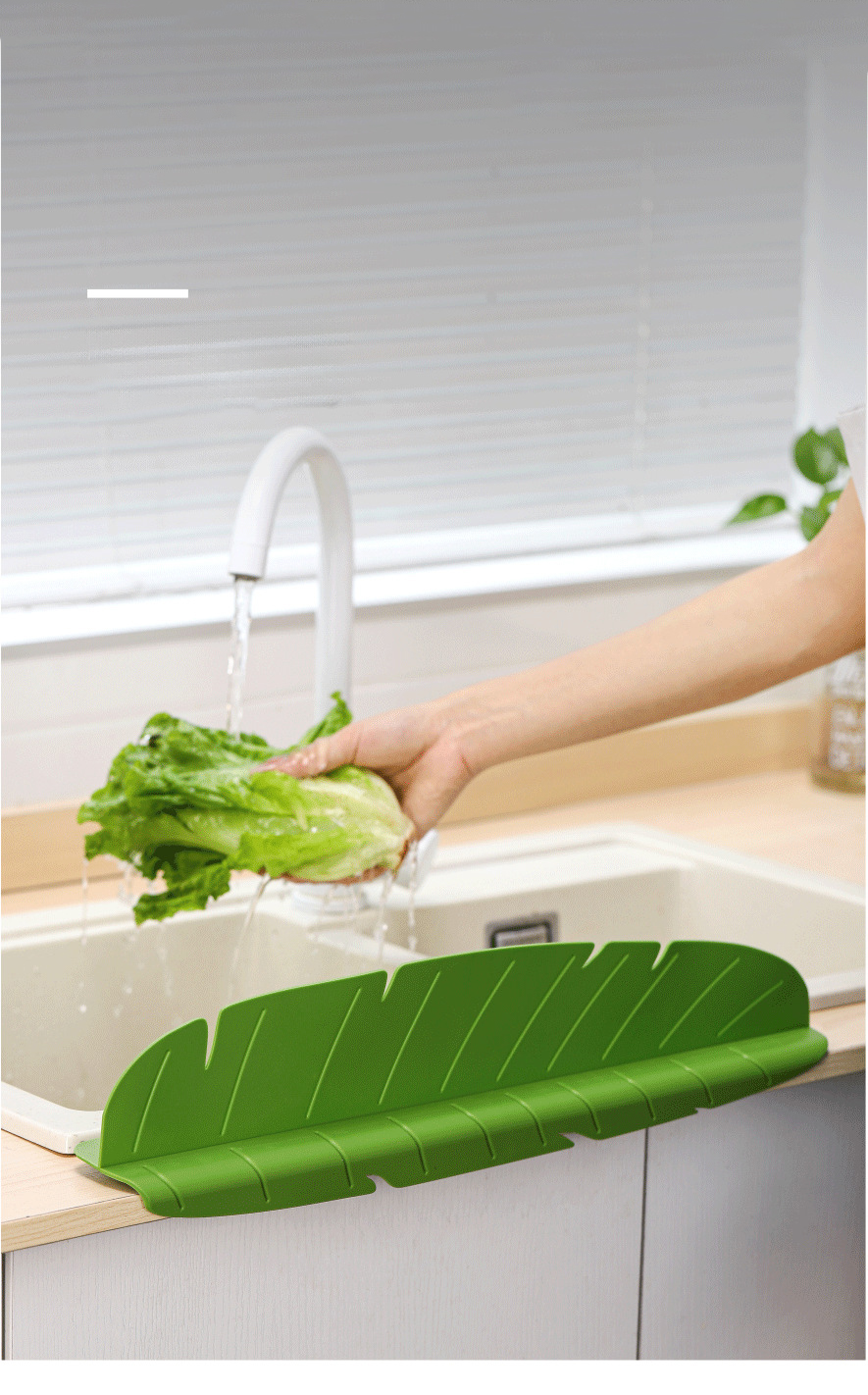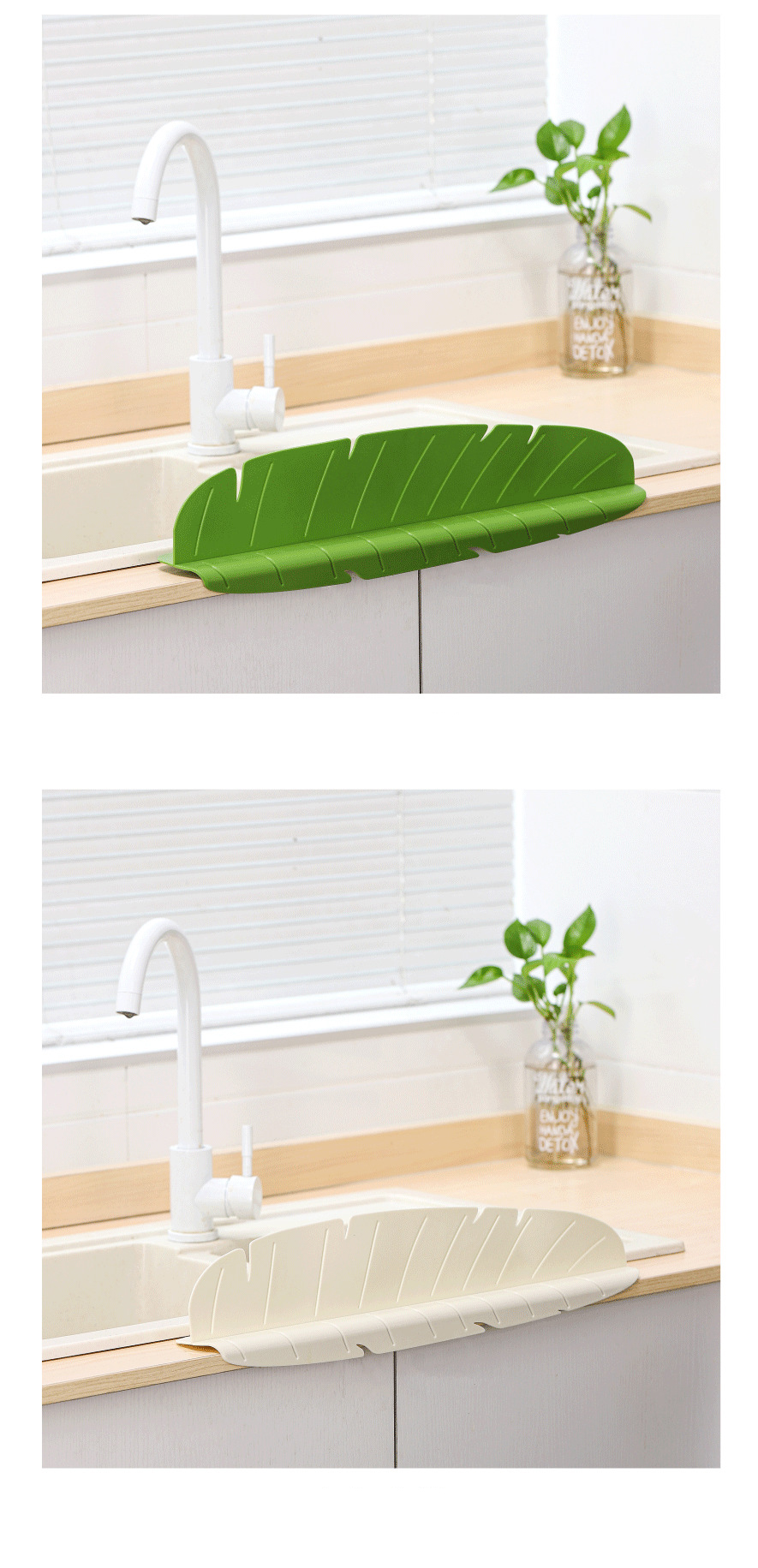 Kitchen Sink Water Splash Guards Soft Banana Leaf Shape Water Sink Flap Block with Suckers Oil-Proof Splash Proof Sink Access