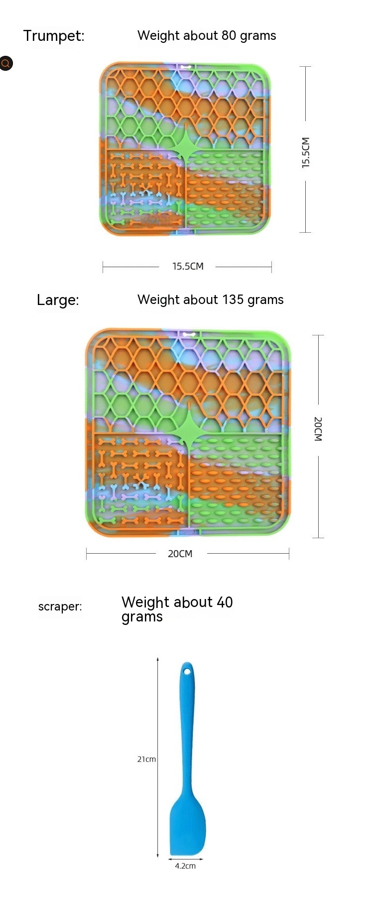 Specifications: Blue-20cm large, purple-20cm large, orange-20cm large, gray-20cm large, green-20cm large, colored or customized-20cm large, blue -- cm small size, purple-cm small size, orange-cm small size, gray-15.5cm small size, green-15.5cm small size, color or customized-15.5cm small size, scraper-blue, scraper-pink, scraper-orange, scraper-black, scraper-Green