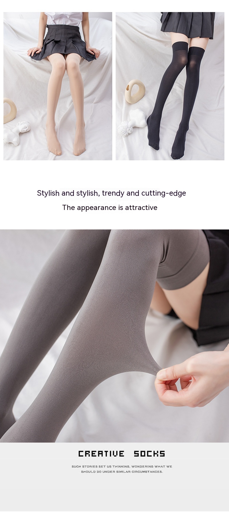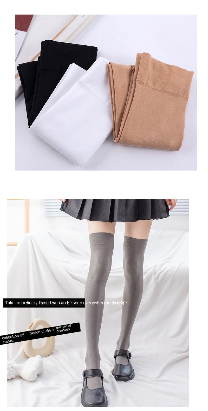 Color: over the knee black, over the knee White, over the knee gray, over the knee skin color, calf black, calf White, calf skin, extended version over the knee black, extended version over the knee White, extended version over the knee skin, extended version over the knee gray, over the knee thin velvet black, over the knee thin velvet skin