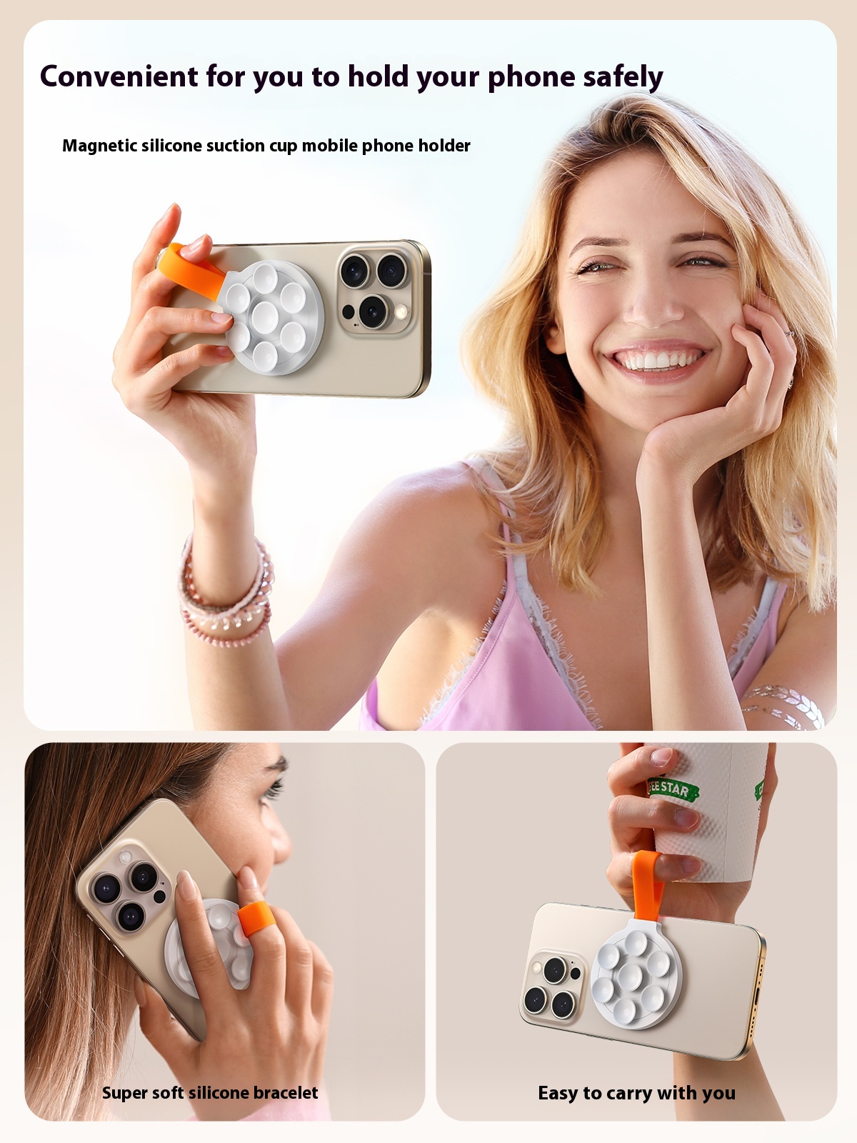 2. Independent suction cup design, firmly and stably adsorb the mobile phone on a smooth plane;