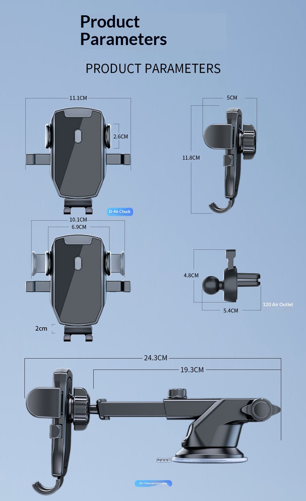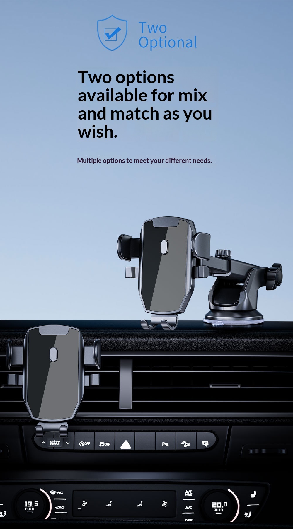 Style B: D46 clamp with 101 suction cup and K5 air vent mount,