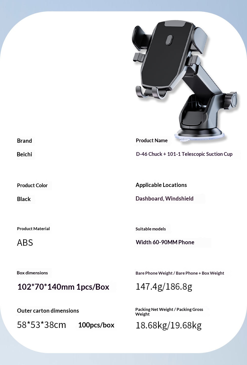 Style A: D46 clamp with 101 suction cup,