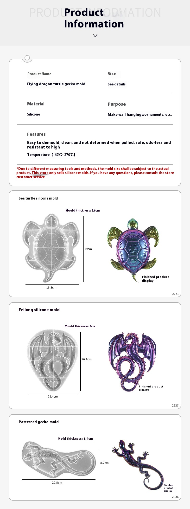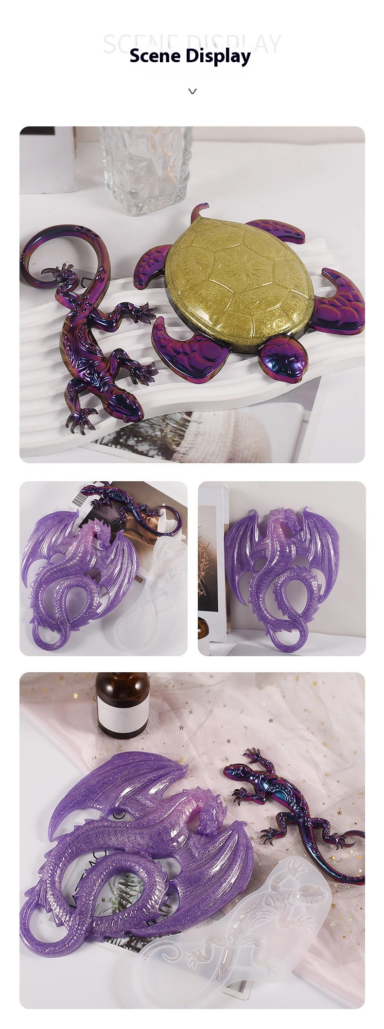 Specifications: Flying Dragon silicone mold, turtle silicone mold, pattern gecko mold, Angel tray mold (12)