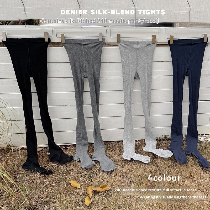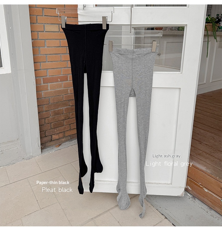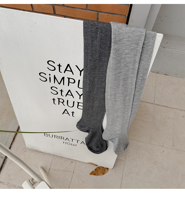 Silk-blend Ribbed Tights High-density Slimming Ultra-thin Light Gray Highly Elastic Snag-resistant Base Socks