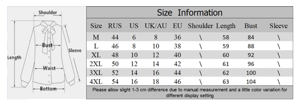 1. Asian sizes are 1 to 2 sizes smaller than European and American people. Choose the larger size if your size between two sizes. Please allow 2-3cm differences due to manual measurement.