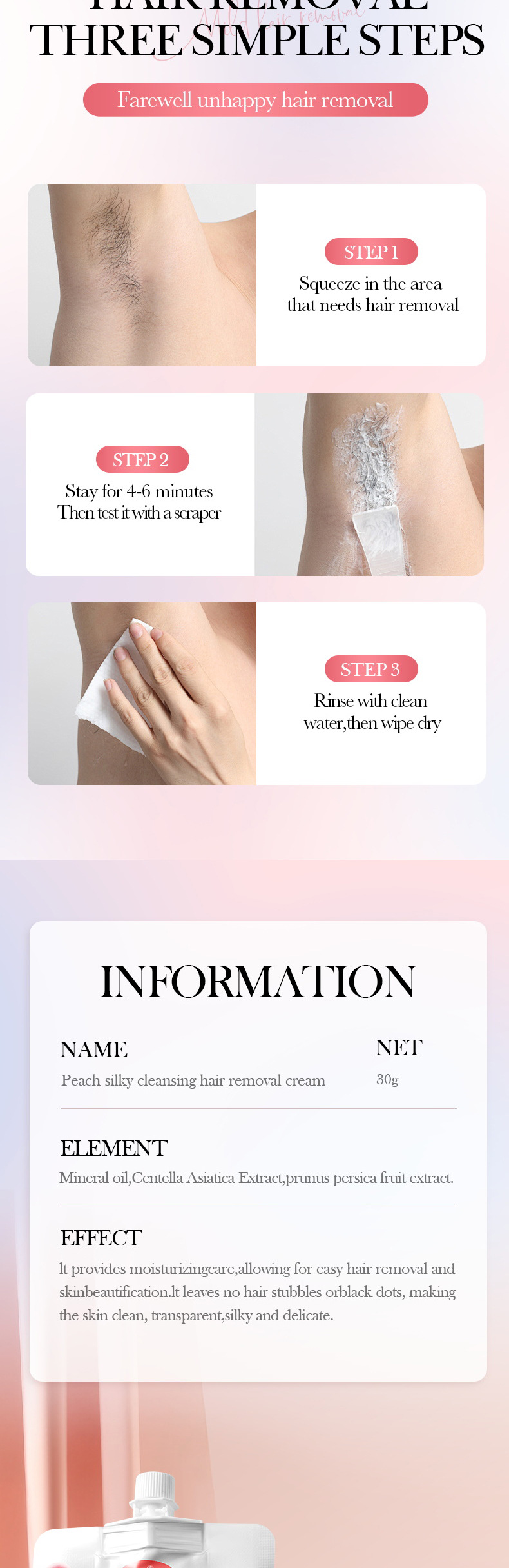 Product information: Applicable skin type: Any skin type Net content: Hair removal cream 30g Category: Hair removal cream