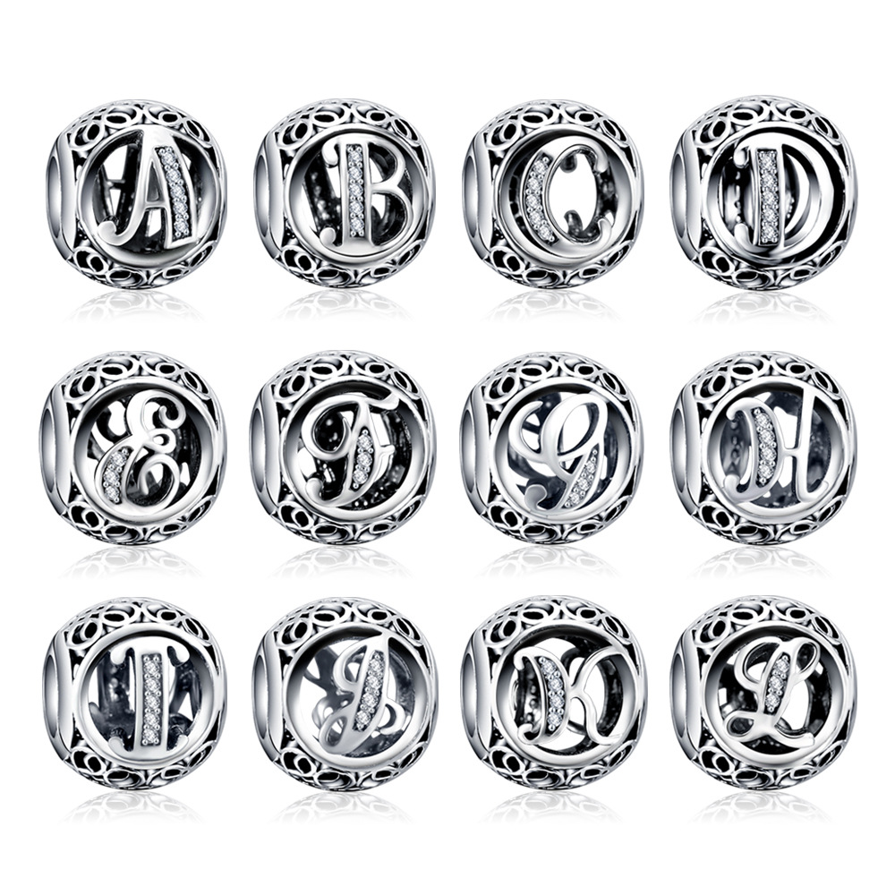 Silver english alphabet beads