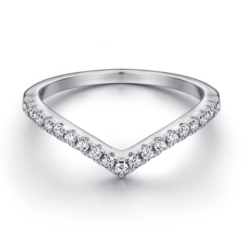 Silver Half-length Ring Row Diamond V Index Finger Ring