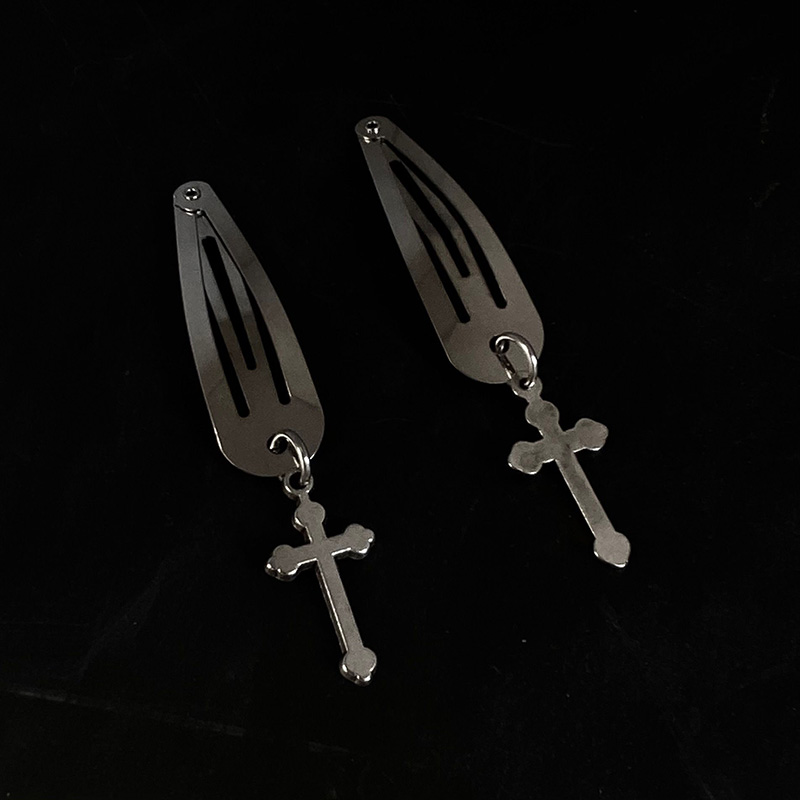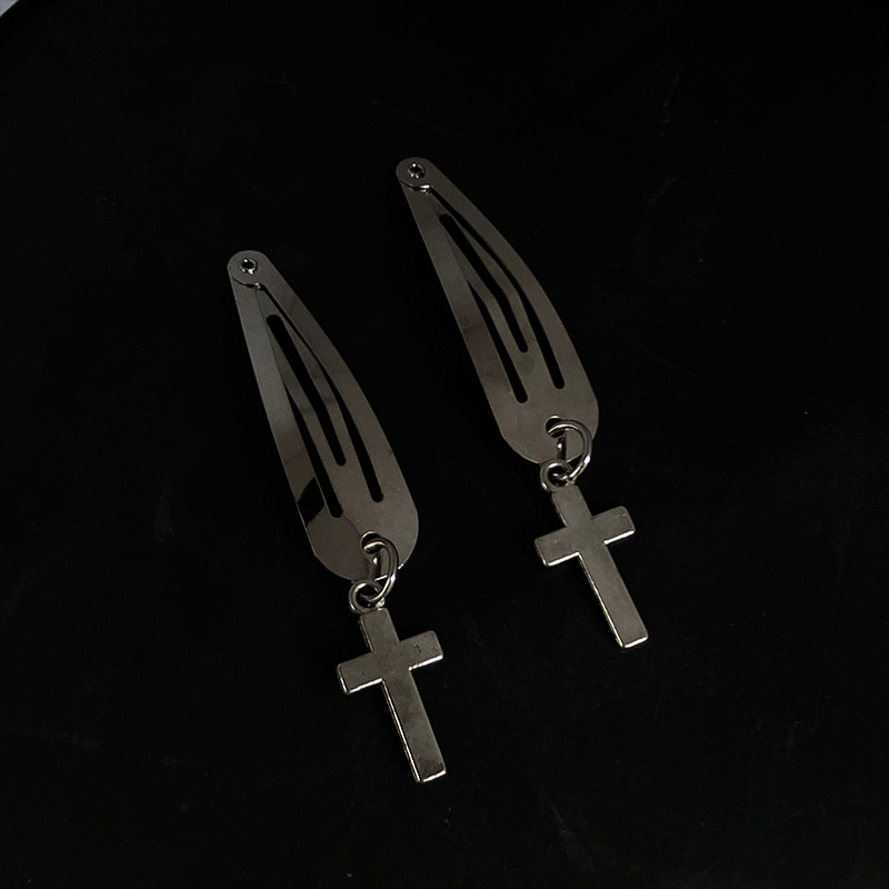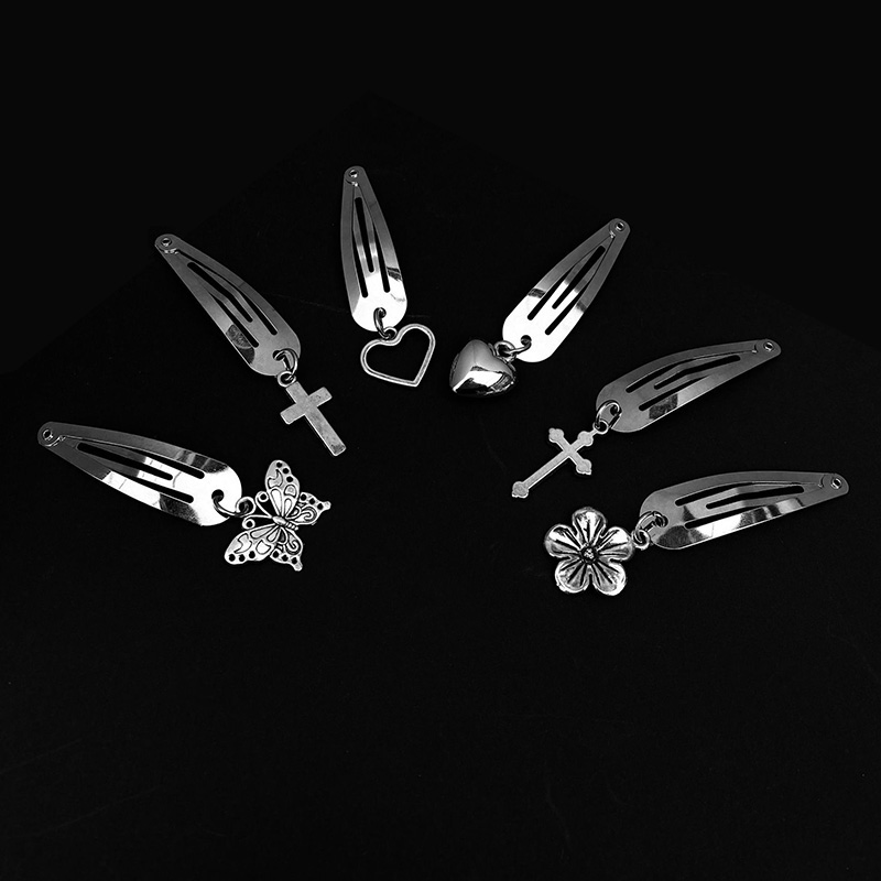 Silver Metal Edge Clip Cross Love Flower Chain Hairpin