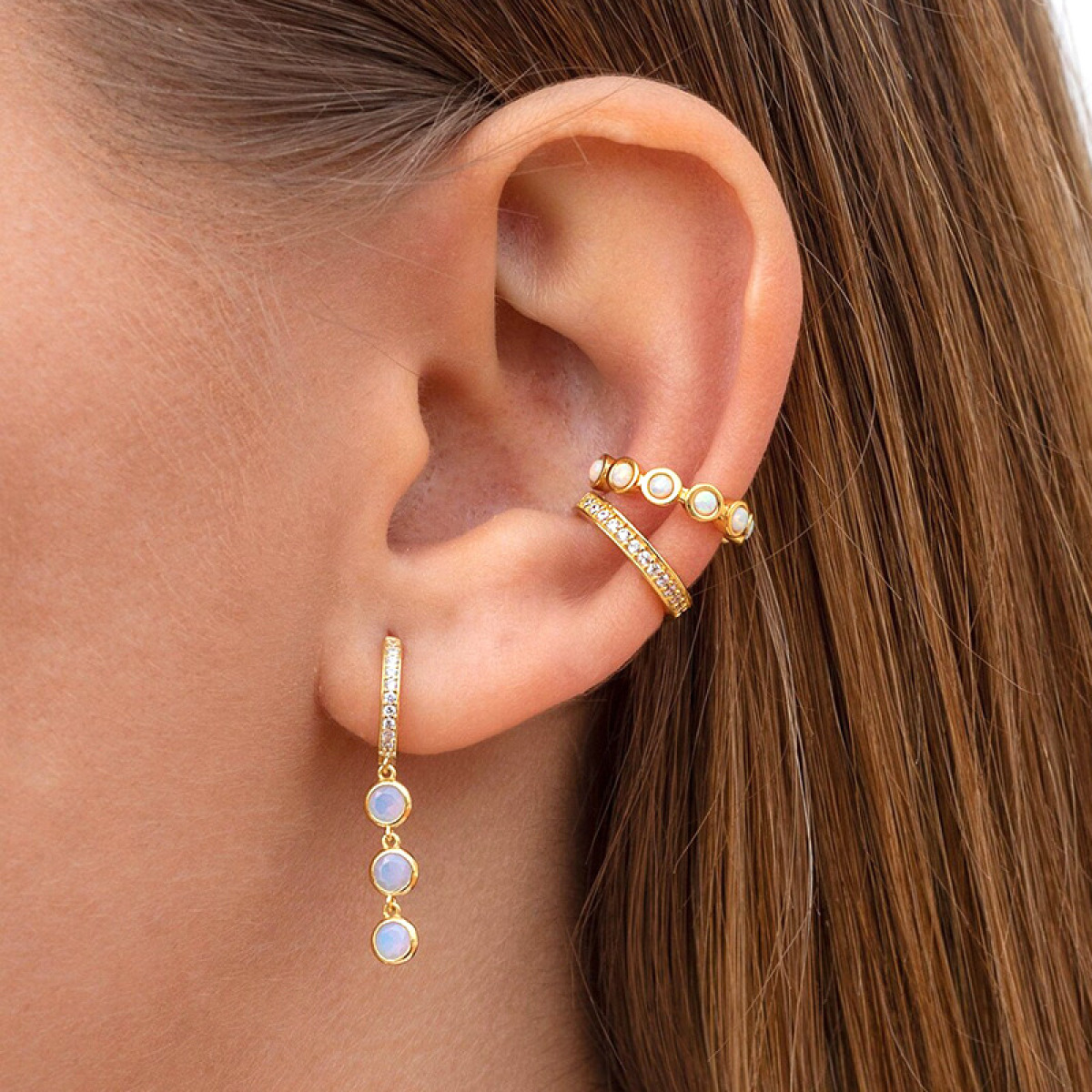 Silver Needle Chain Opal Earrings