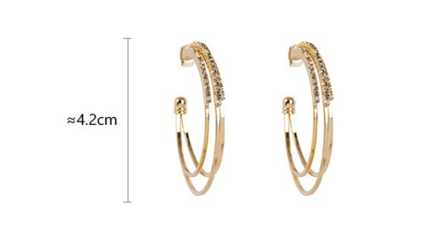 Silver Needle Exaggerated Full Diamond Geometric Circle Earrings Temperament
