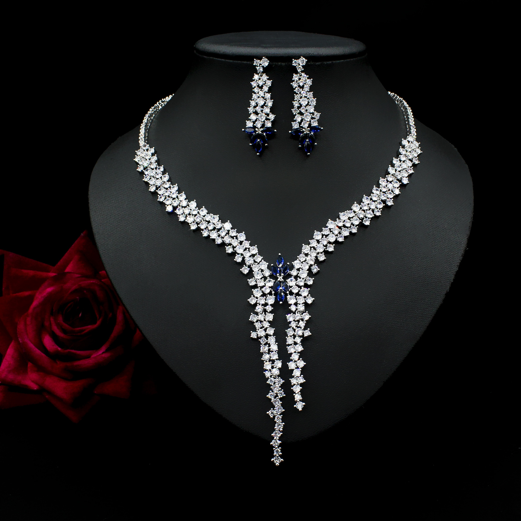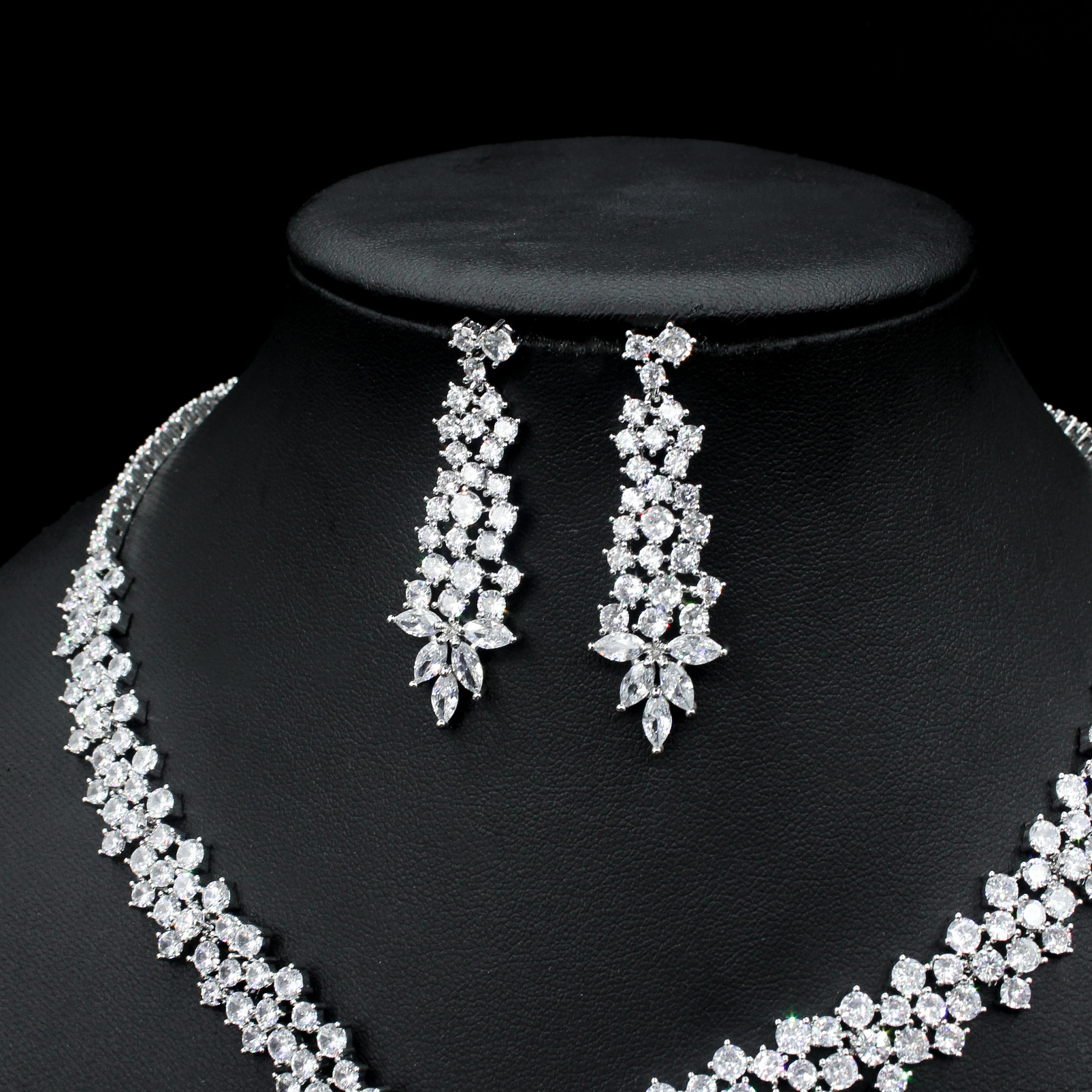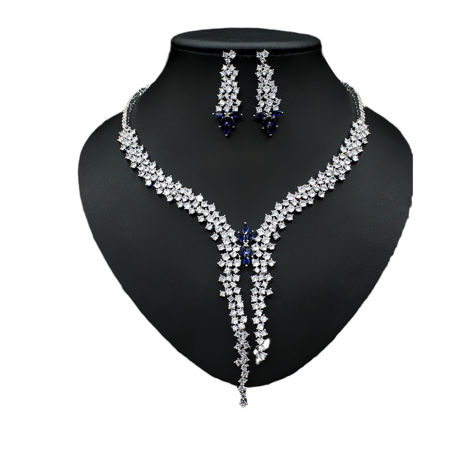 Silver Needle Fashion Exaggerated Inlaid Zircon Earrings And Necklace Set