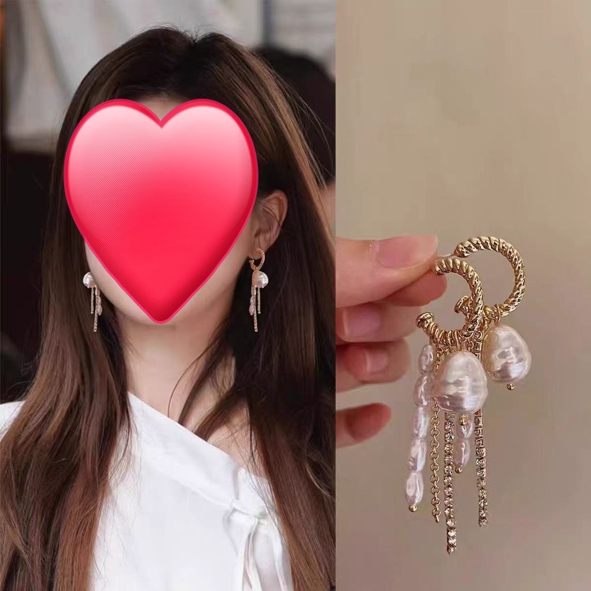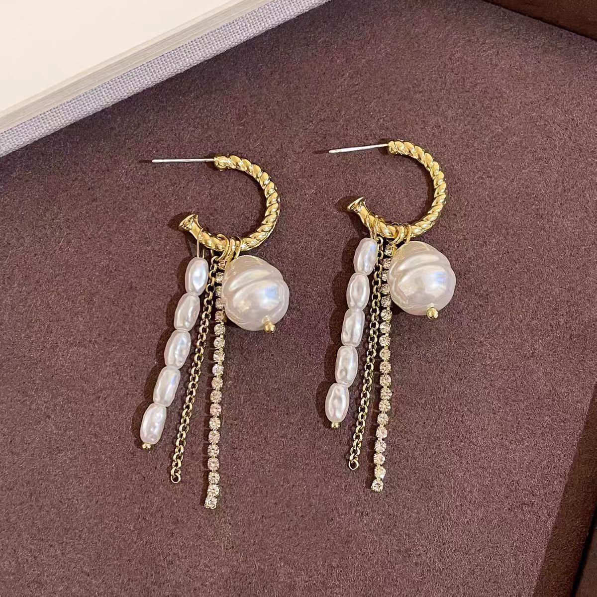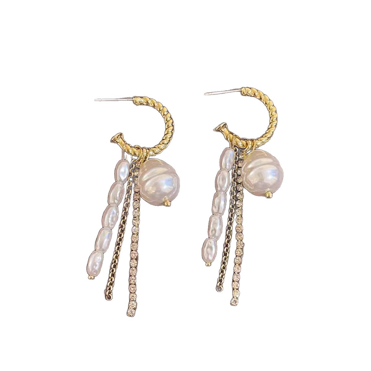 Color: F9916 Pearl Claw-Set Zircon C-Shaped Tassel Earrings