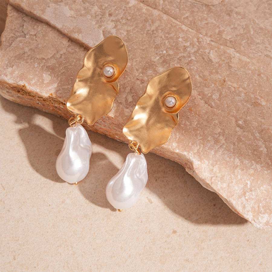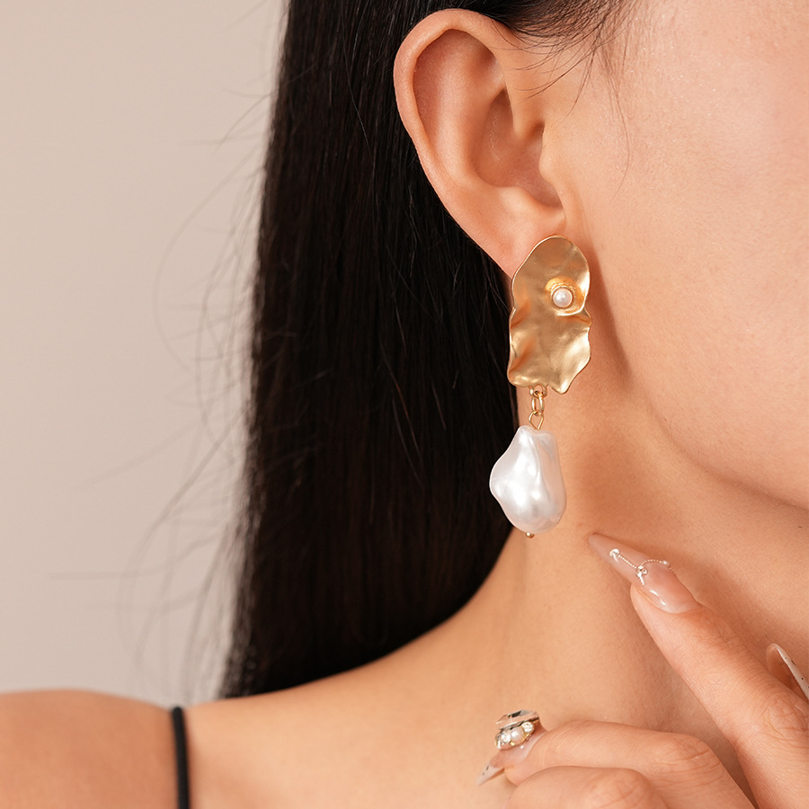 Silver Needle Irregular Oval Geometric Pearl Stud Earrings