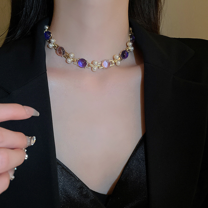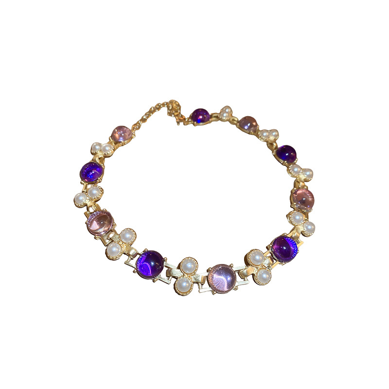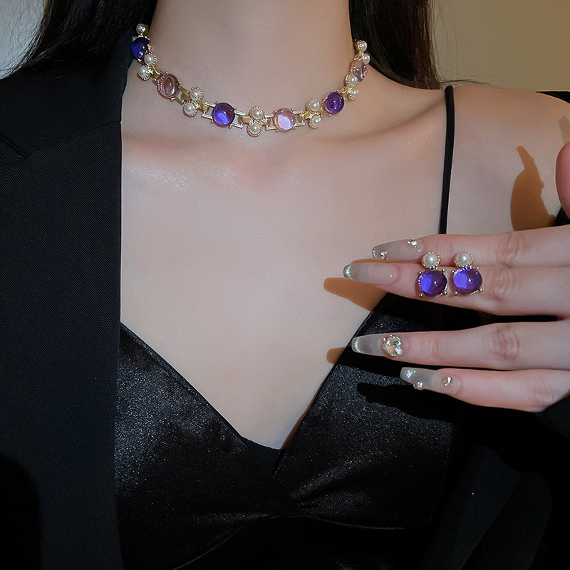 Color: necklace-Golden-purple pearl, Silver Needle-Golden-purple pearl