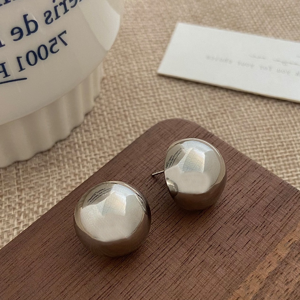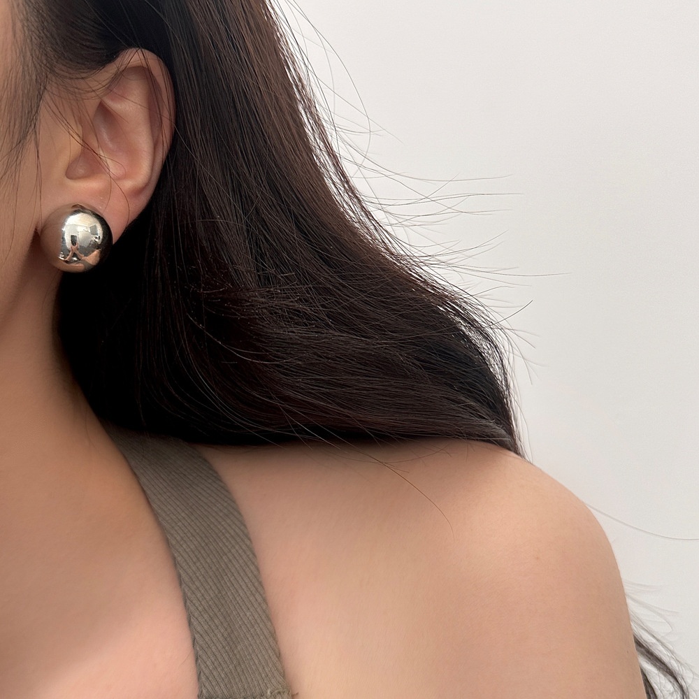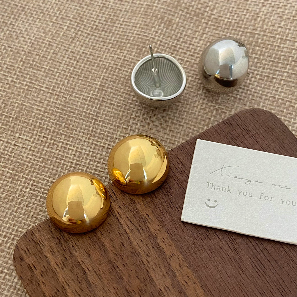 Silver Needle Plated With Real Gold Fashion Shiny Surface Ball Earrings