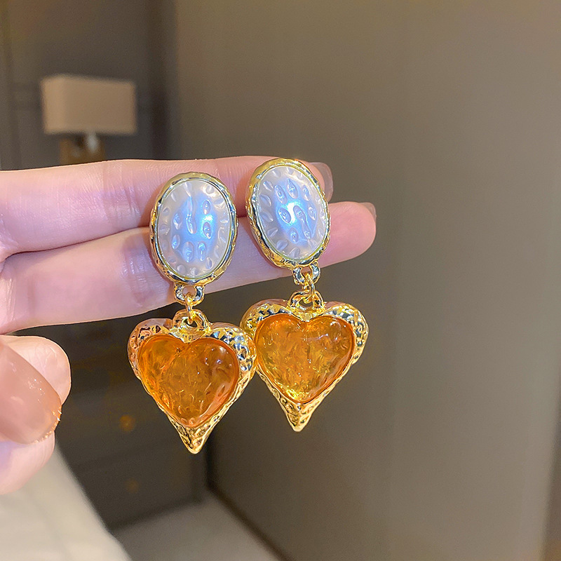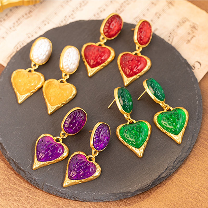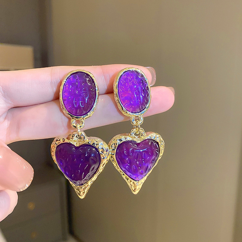 Color: purple Oval love heart stud earrings, red oval love heart stud earrings, green oval love heart stud earrings, yellow white oval love heart stud earrings