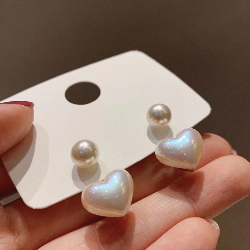 Silver Needle Simple Small Love Pearl Stud Earrings