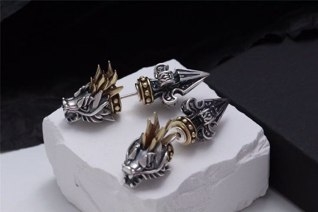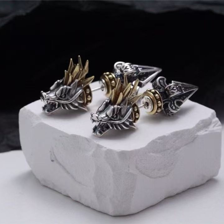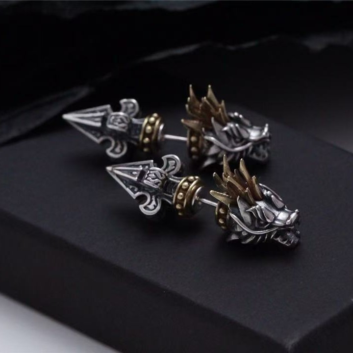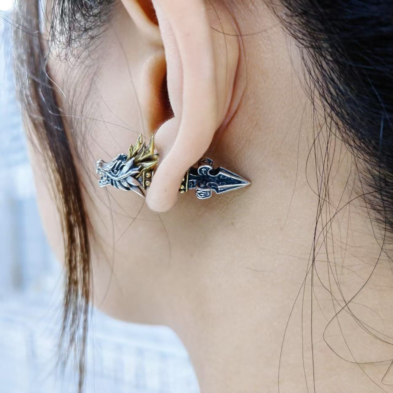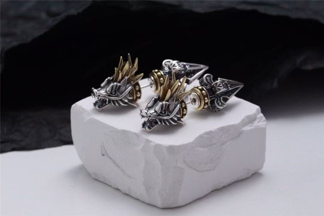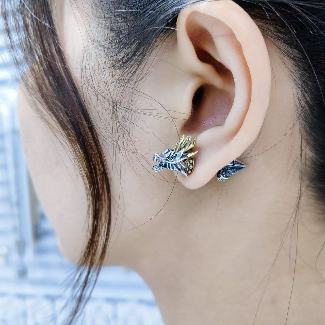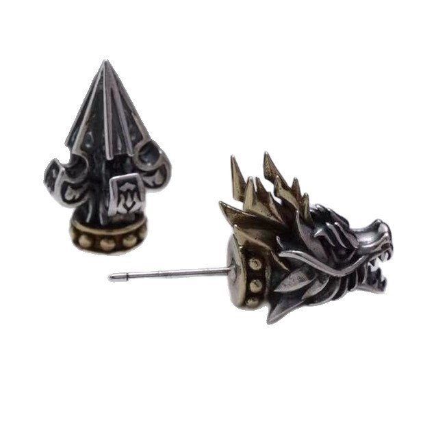 Color: dragon head ear studs with back earplugs