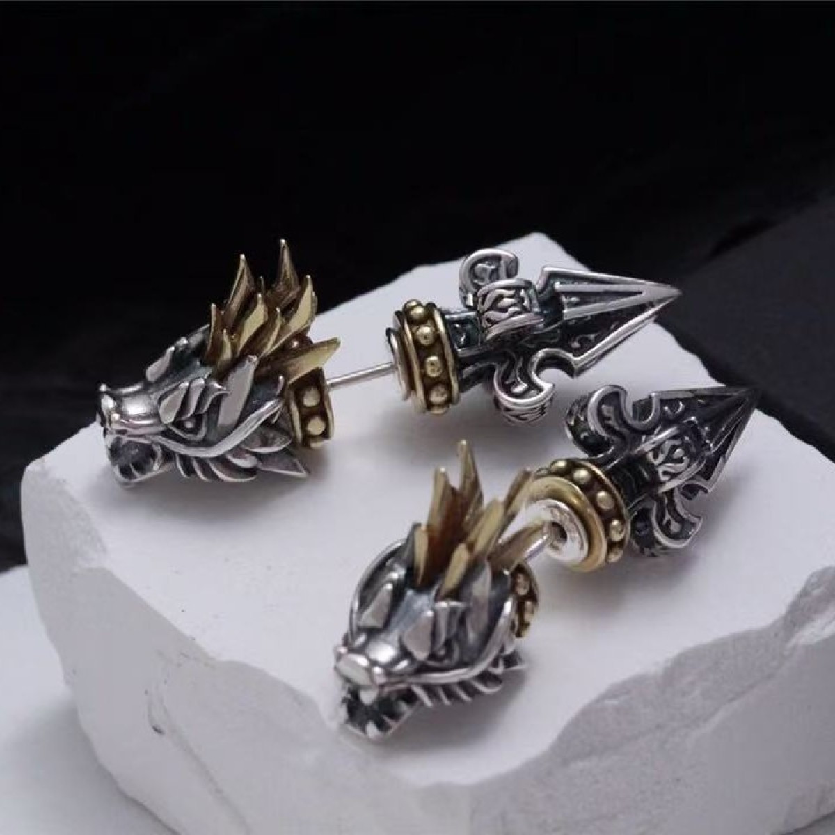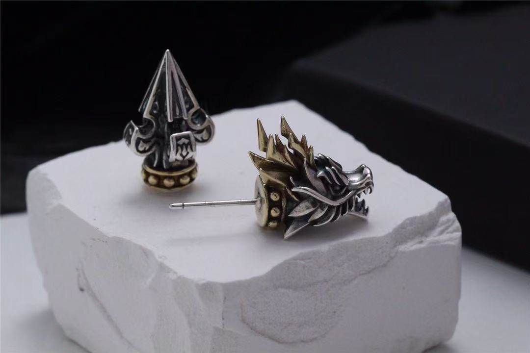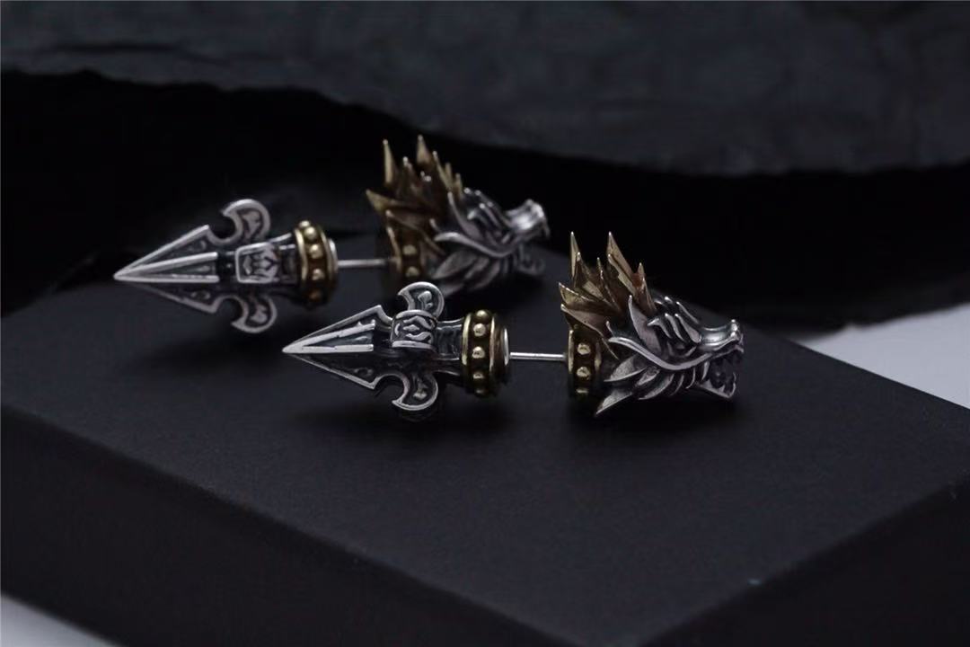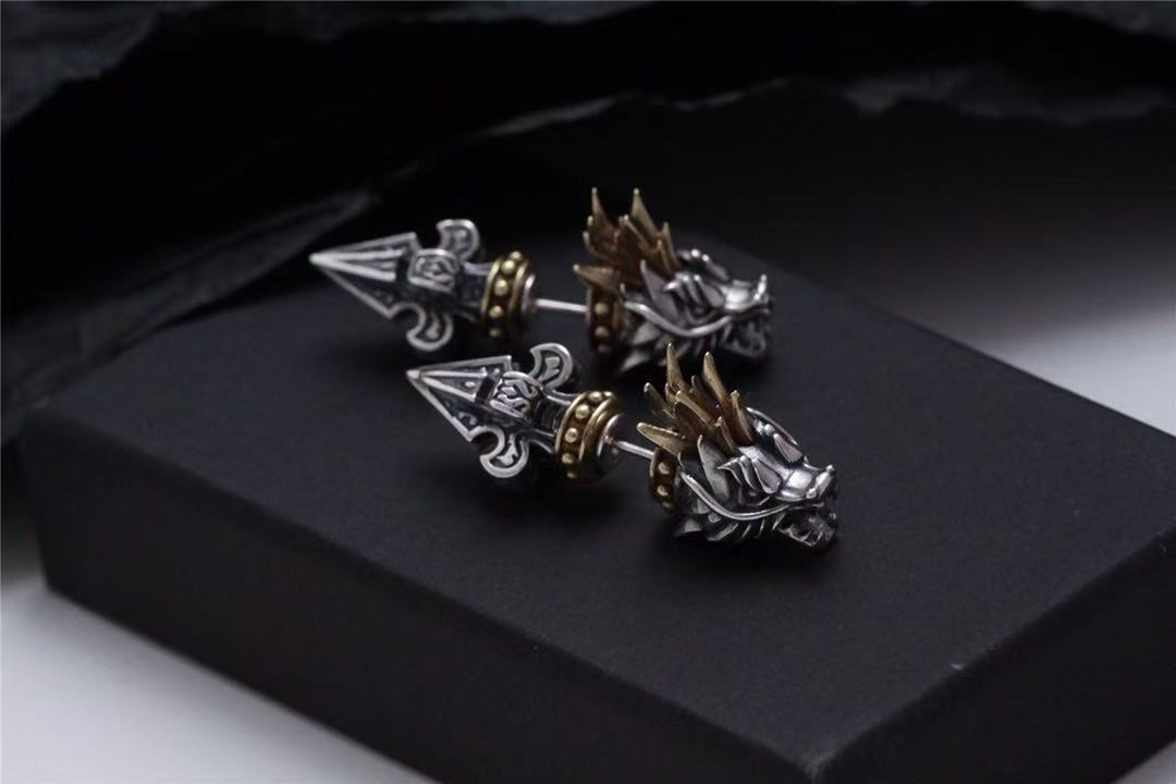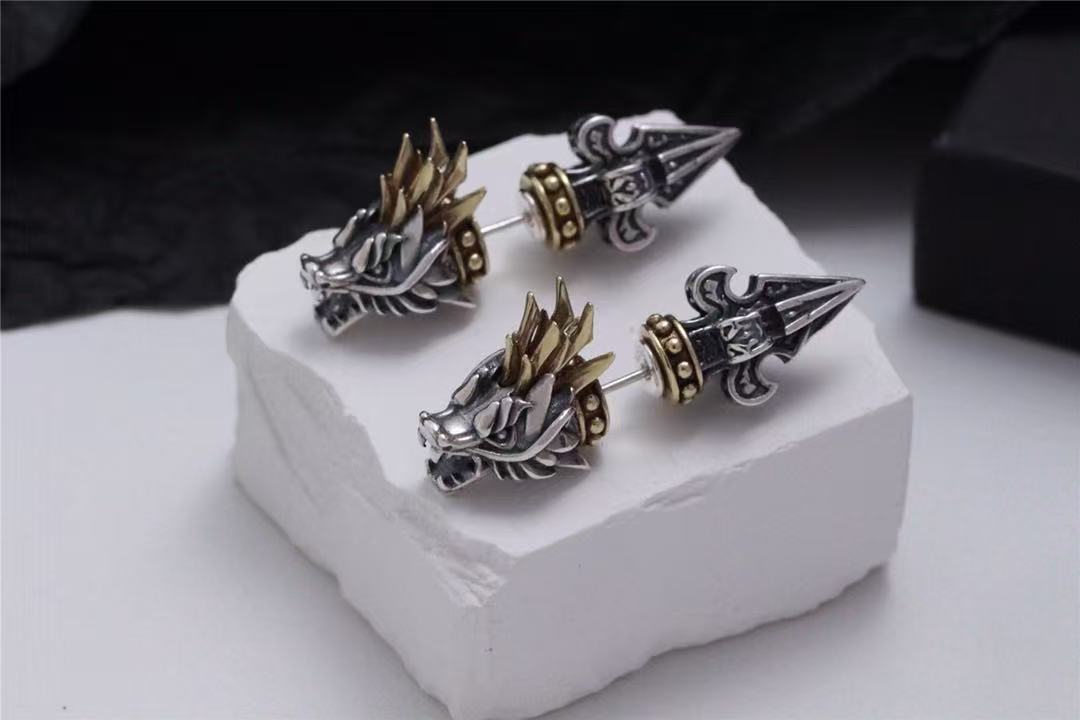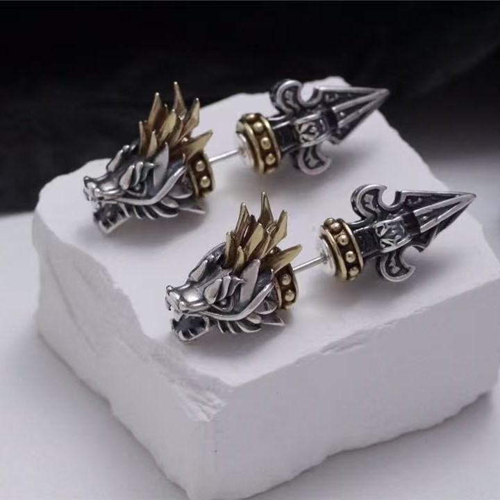 Color: dragon head ear studs with back earplugs